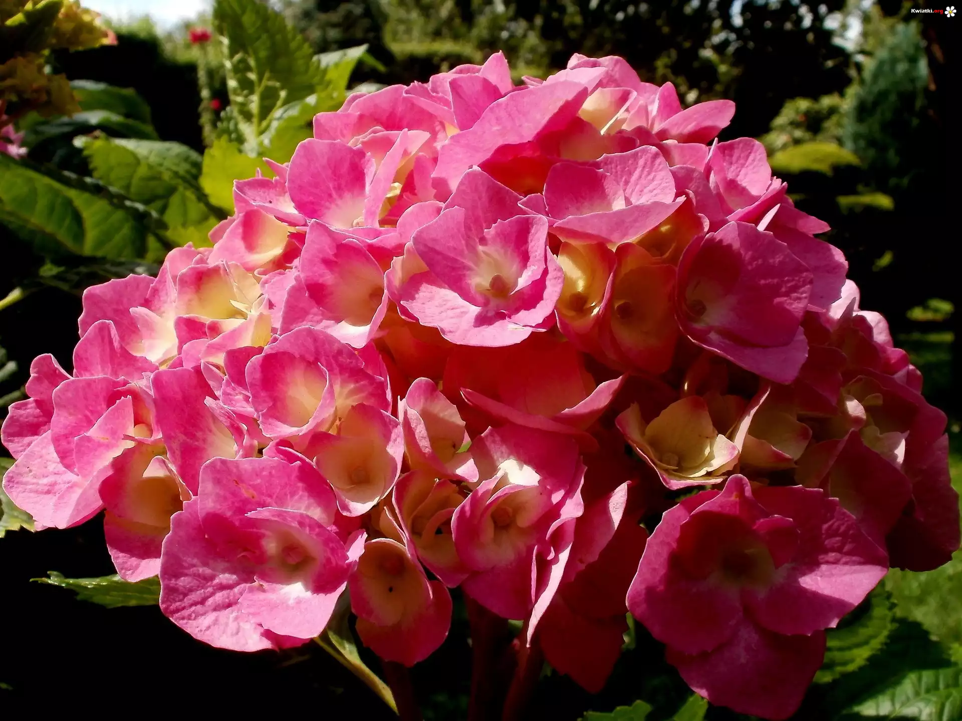 Kwiat Kwiat, Hortensja, Różowa, Liście, Ogród