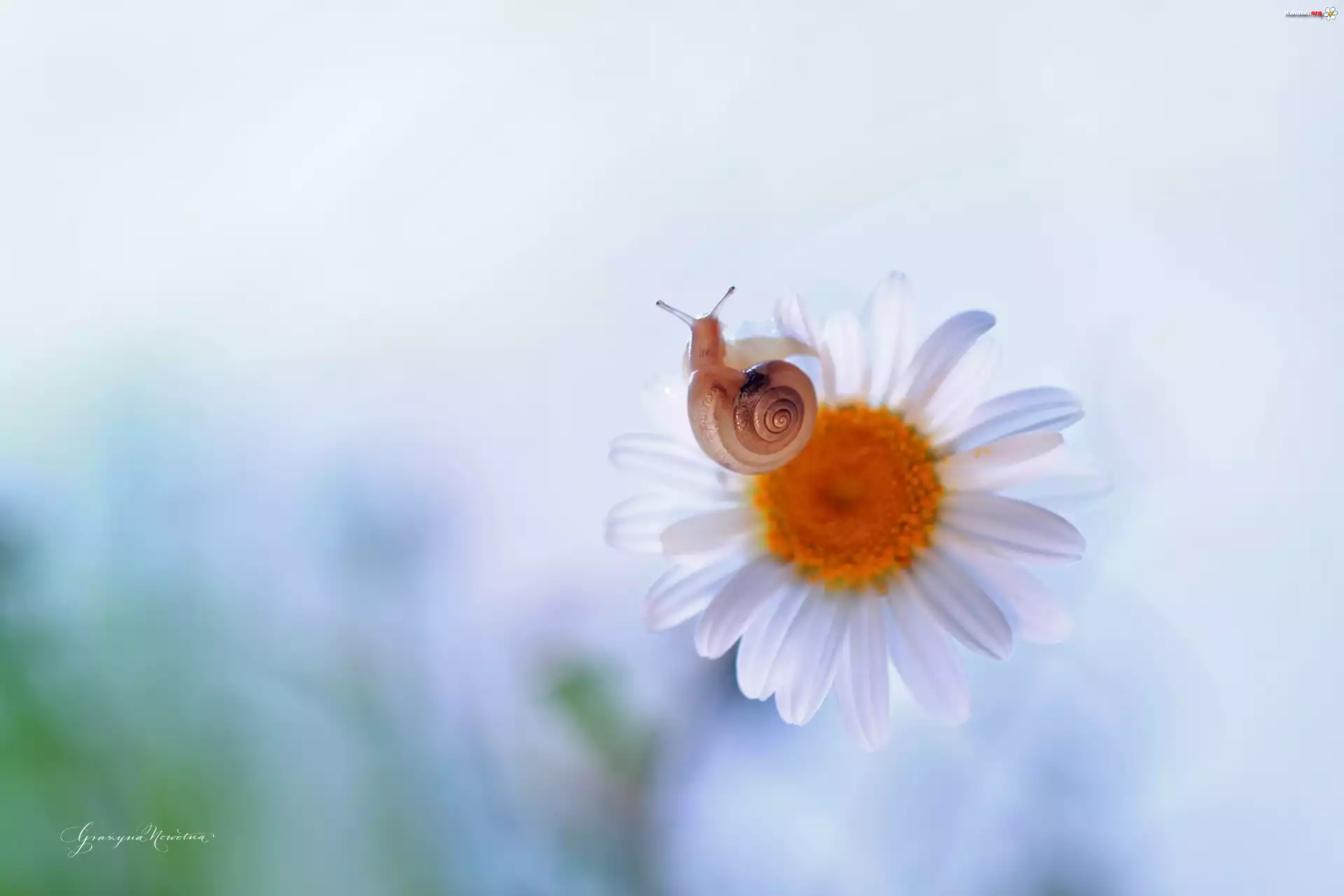 Ślimak, Margerytka, Kwiat, Biały - Zdjęcia