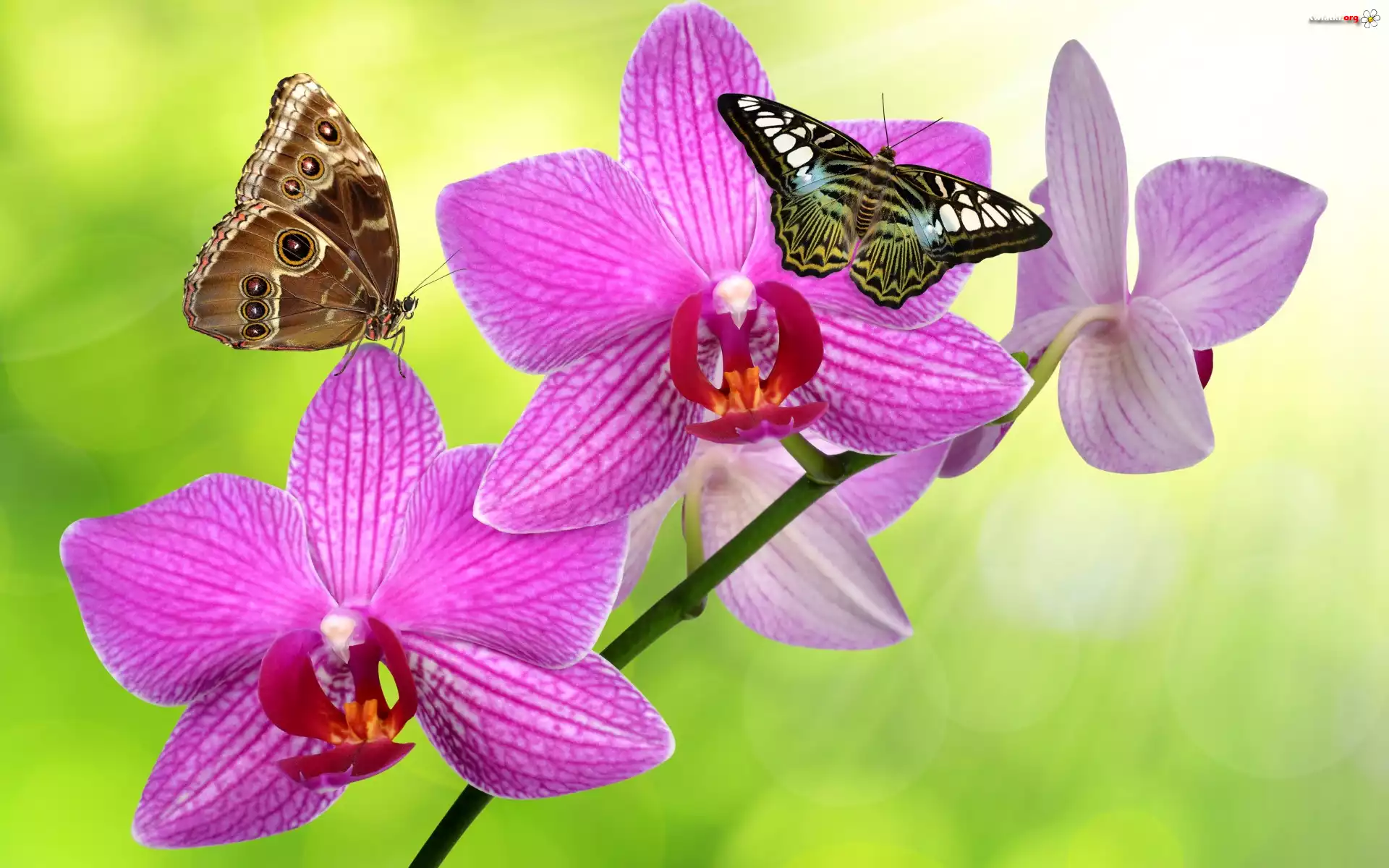 Kwiat Kwiat, Różowy, Storczyk, Motyle, Gałązka