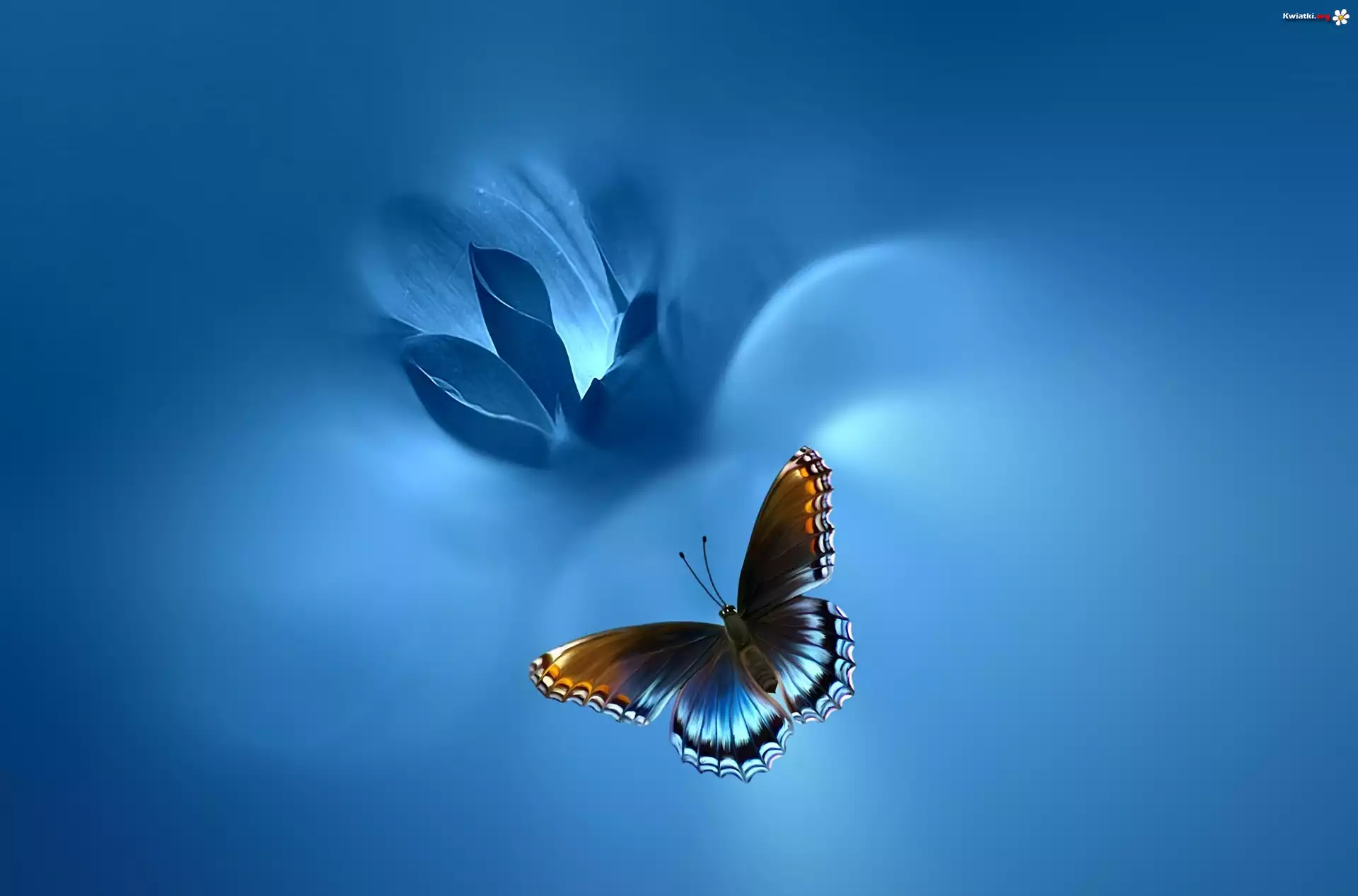 Kwiat Kwiat, Motyl, Niebieskie, Tło