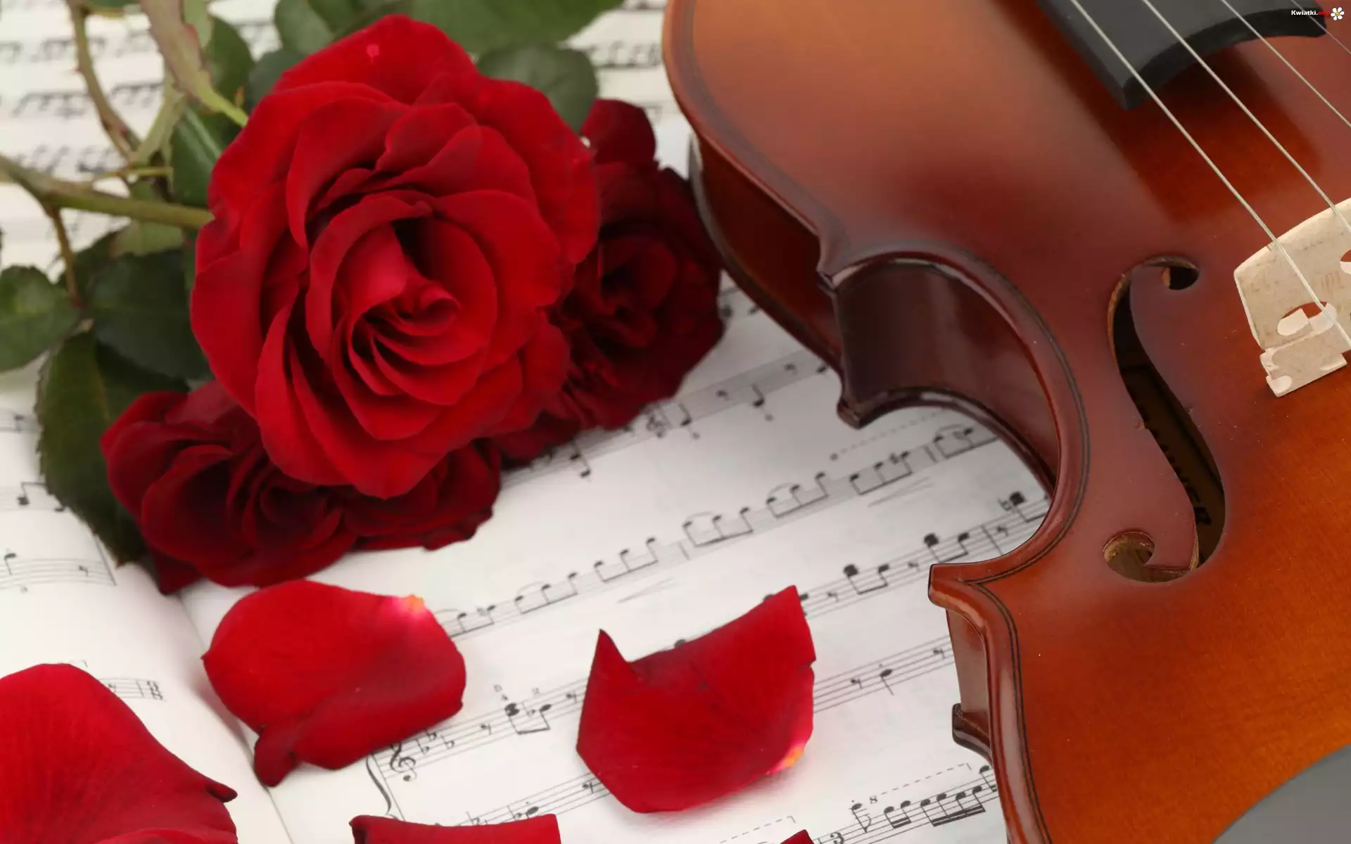 Kwiat, Roza, Nuty, Skrzypce - Zdjęcia