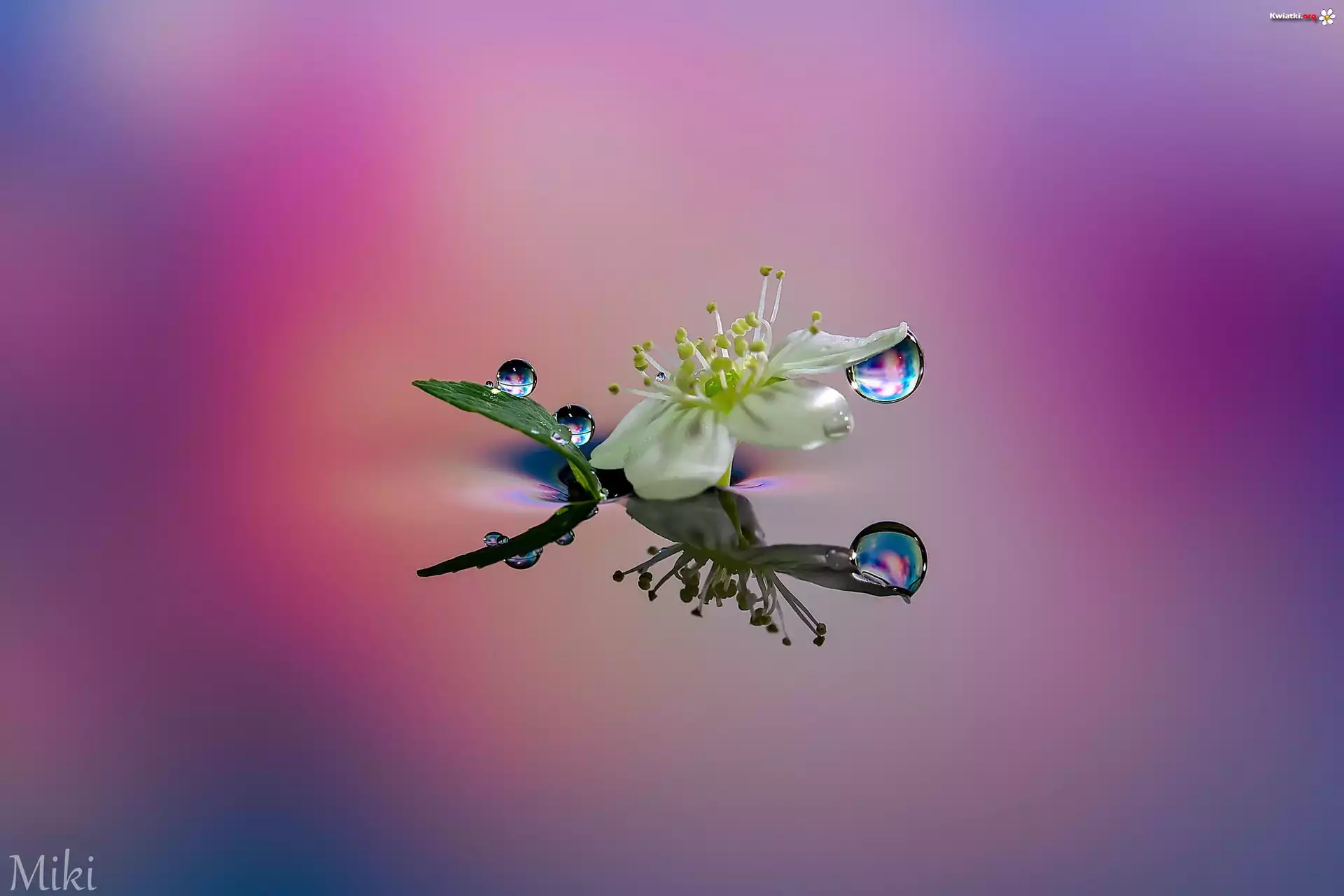 Kwiat, Krople, Odbicie, Makro - Zdjęcia