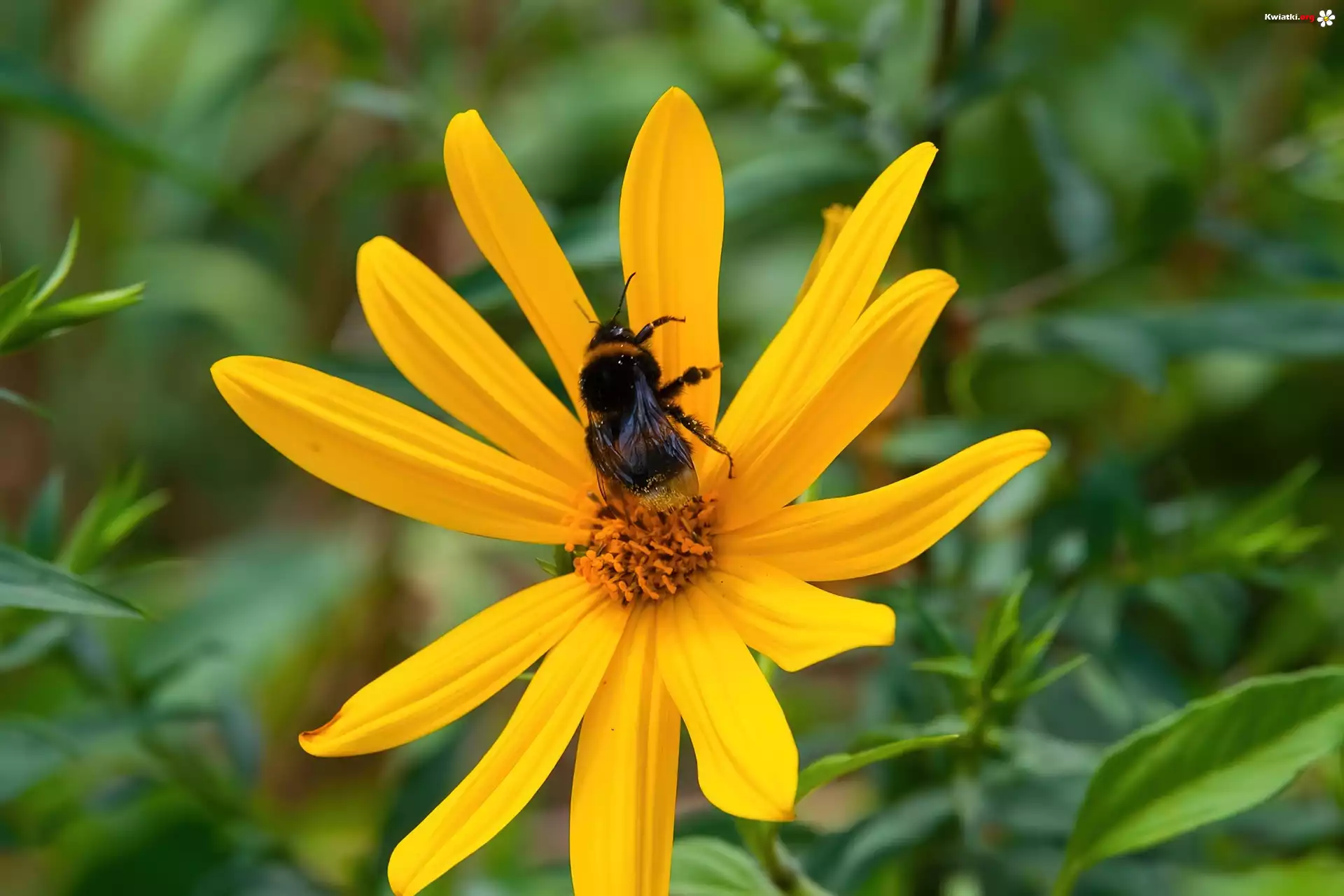Żółty, Kwiat, Trzmiel - Zdjęcia