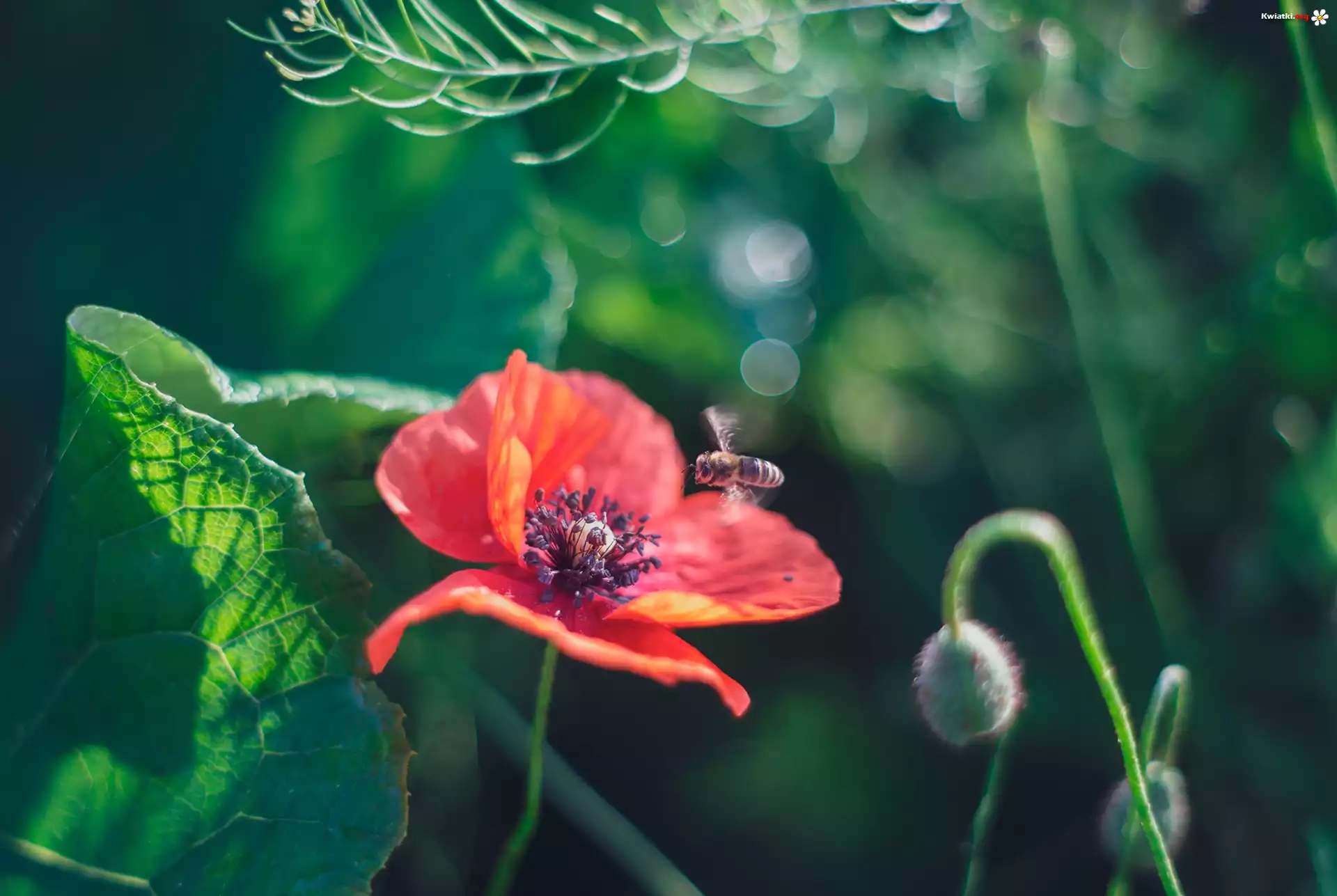 Kwiat Kwiat, Mak, Liście, Owad, Pszczoła
