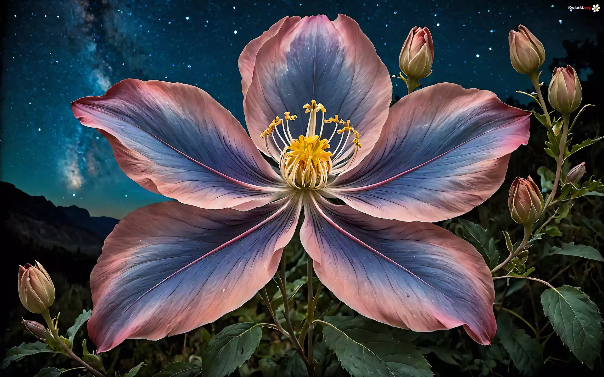 Grafika, Kwiat, Pąki, Noc, Gwiazdy - Zdjęcia