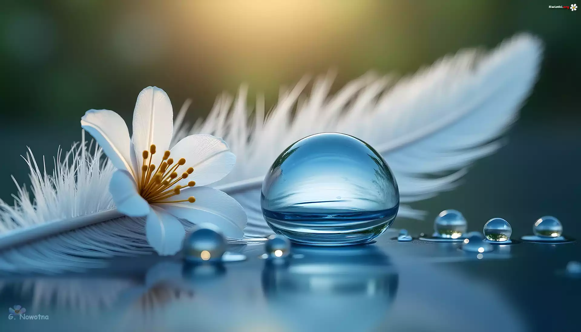 Kropla, Kwiat, Piórko, Grafika AI - Zdjęcia