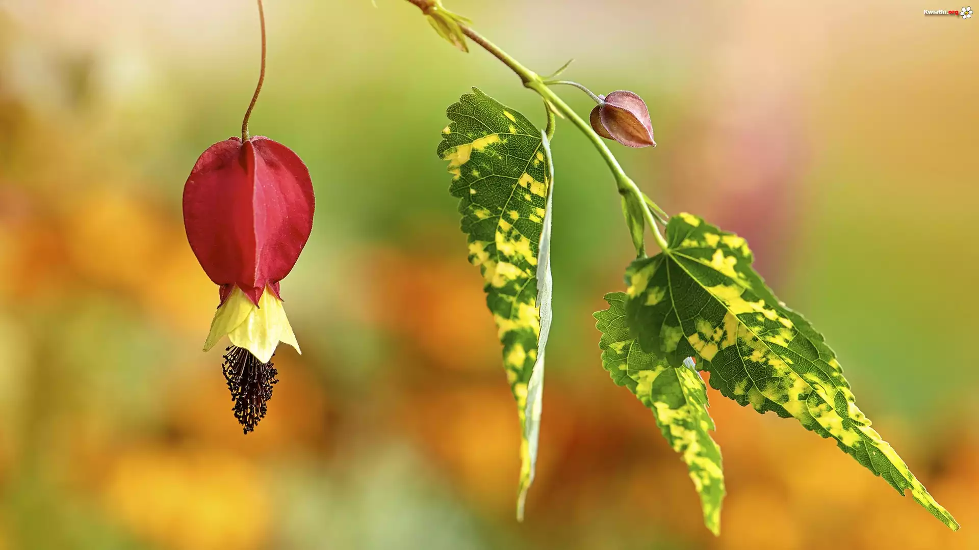Kwiat, Liście, Zaślaz płożący, Abutilon - Zdjęcia