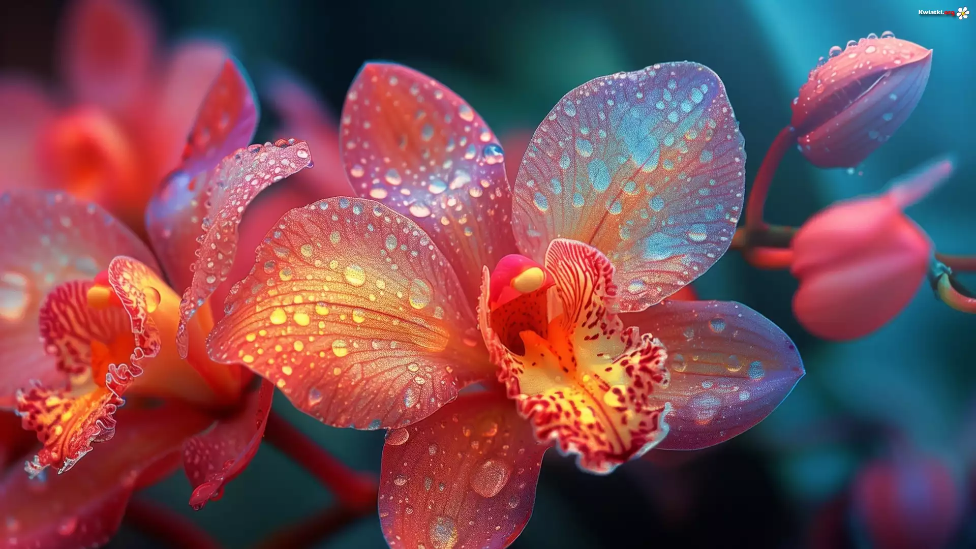 Storczyk, Kwiat, Pomarańczowy, Krople, Grafika - Zdjęcia