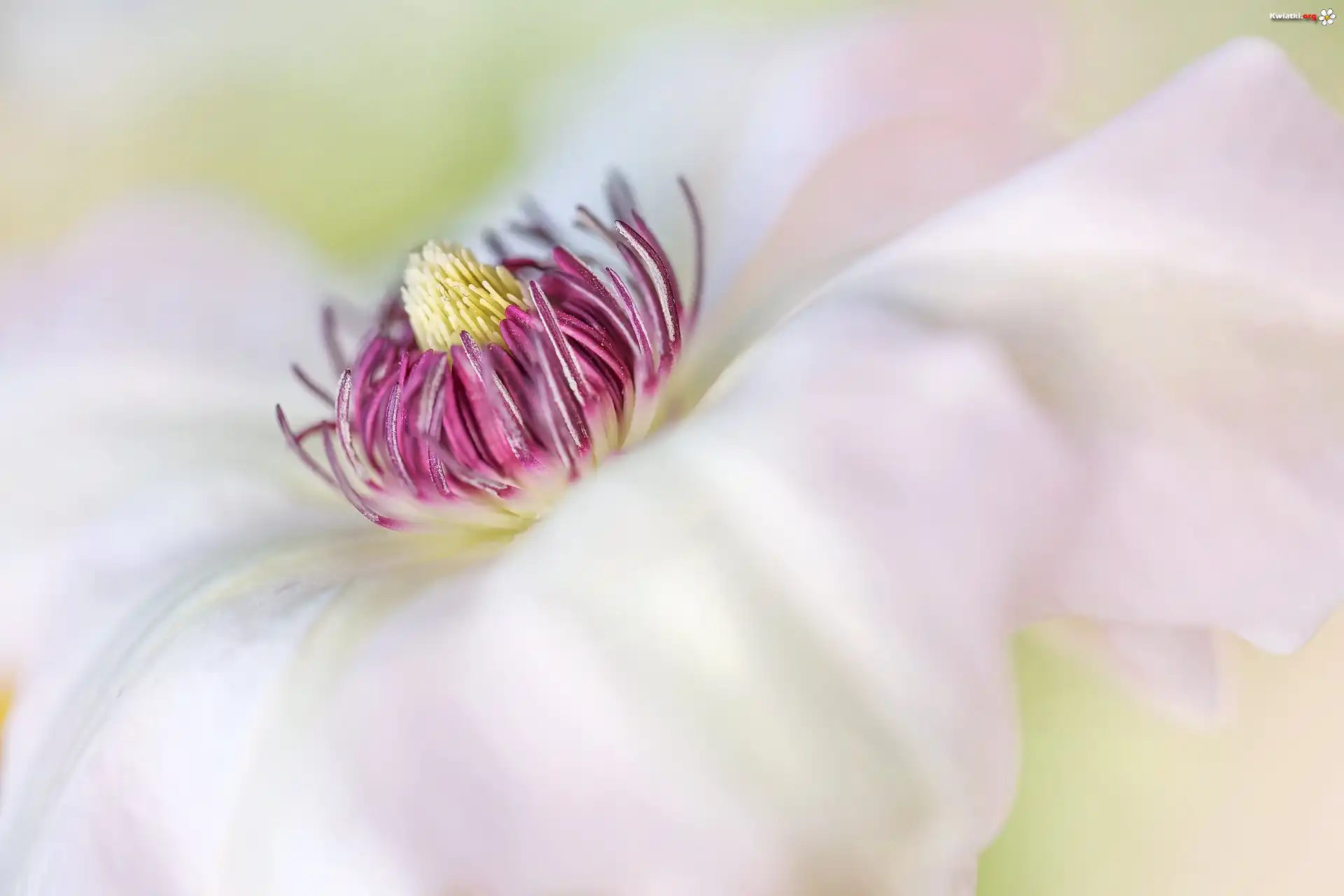 Kwiat, Biały, Pręciki, Clematis, Powojnik, Makro - Zdjęcia