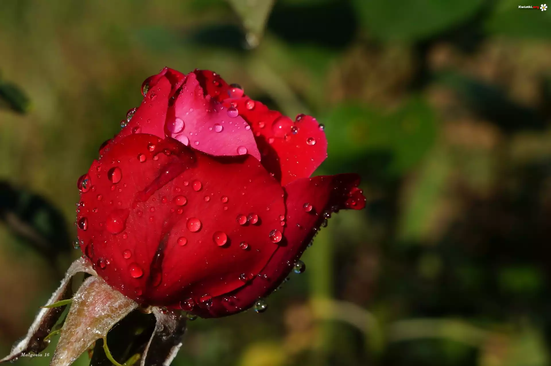 Kwiat, Czerwona, Róża, Krople - Zdjęcia