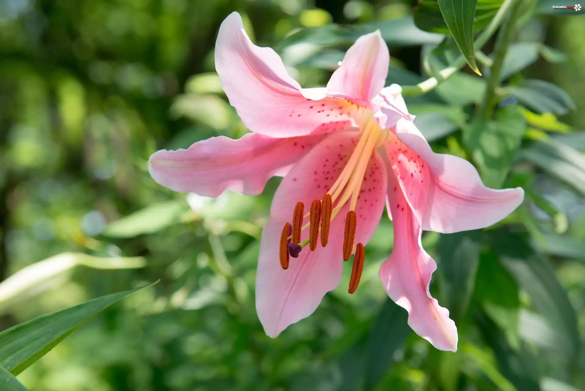 Kwiat, Lilia, Różowa, Liście - Zdjęcia