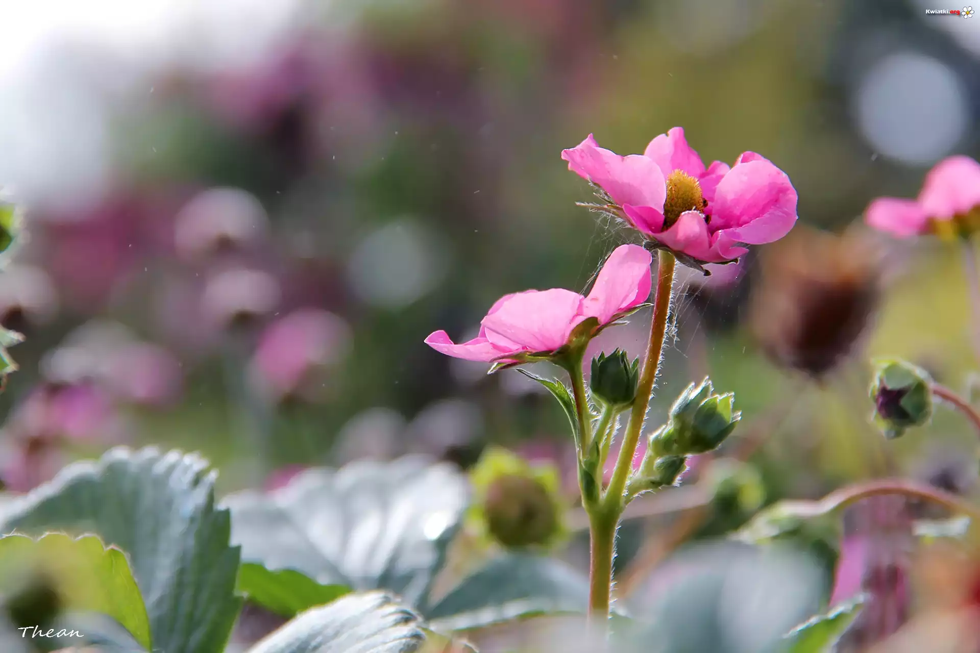 Różowy, Kwiat, Truskawki - Zdjęcia