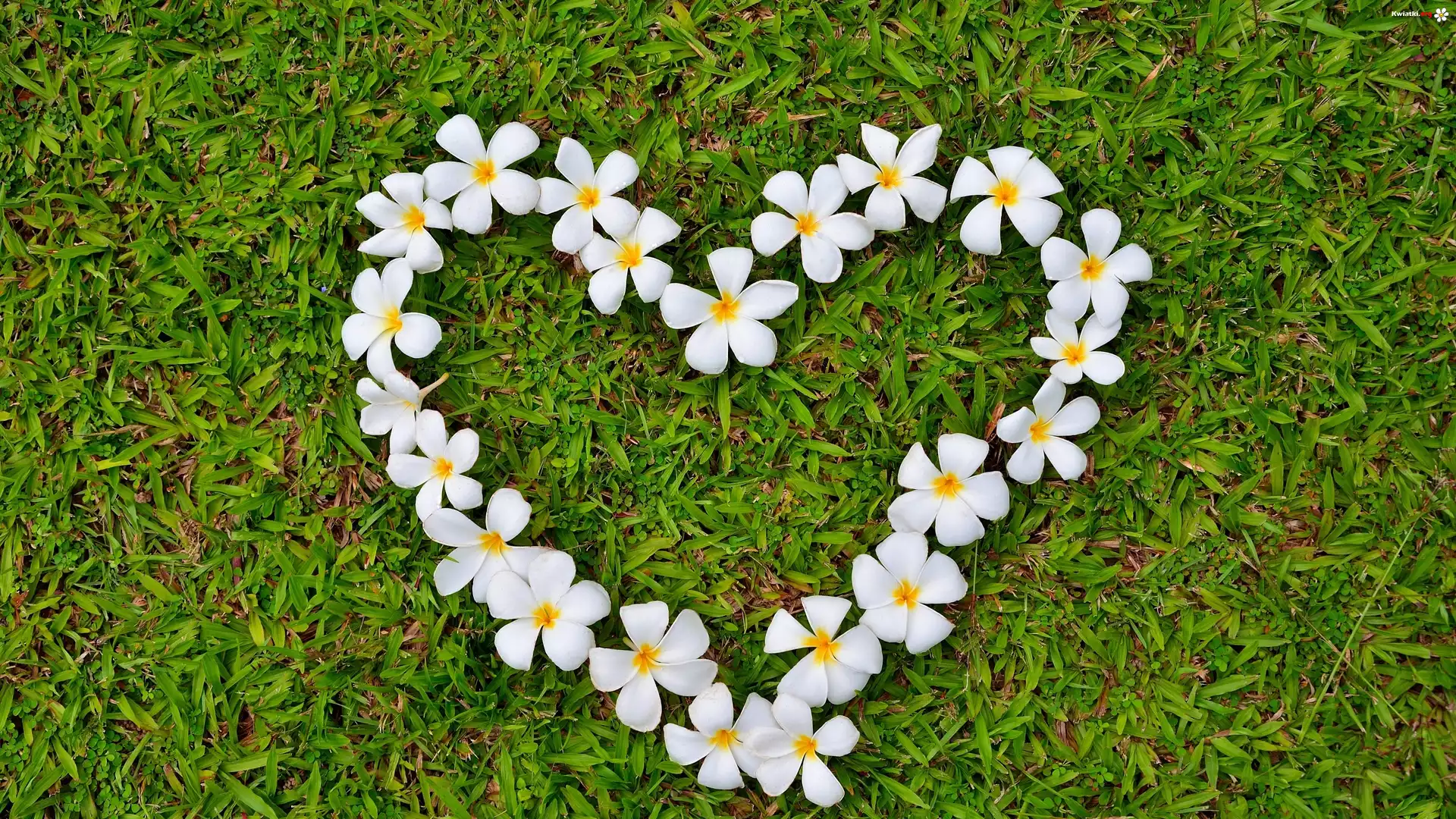 Kwiat, Plumeria, Serce, Trawa - Zdjęcia