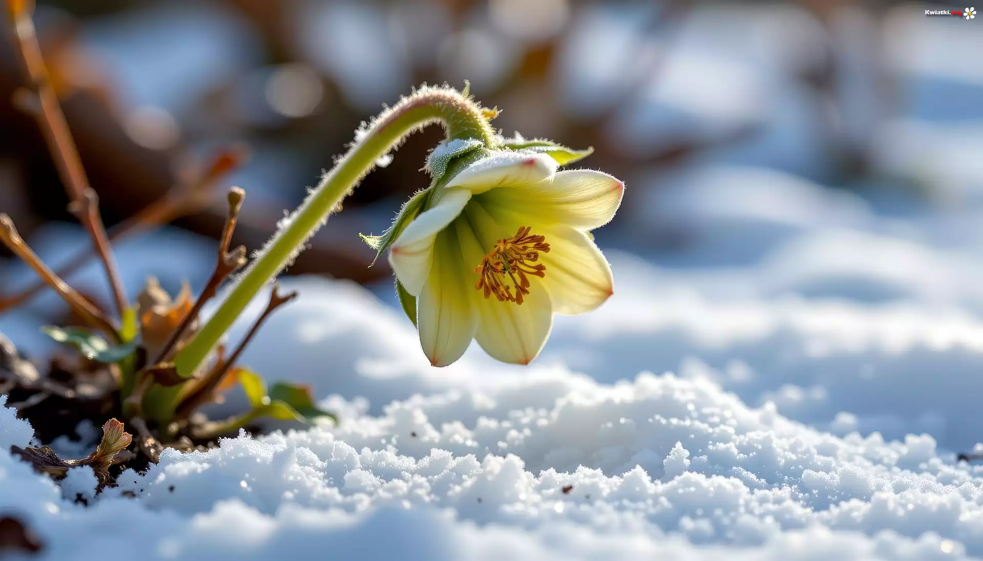 Kwiat Ciemiernik, Kwiat, Śnieg, Grafika AI