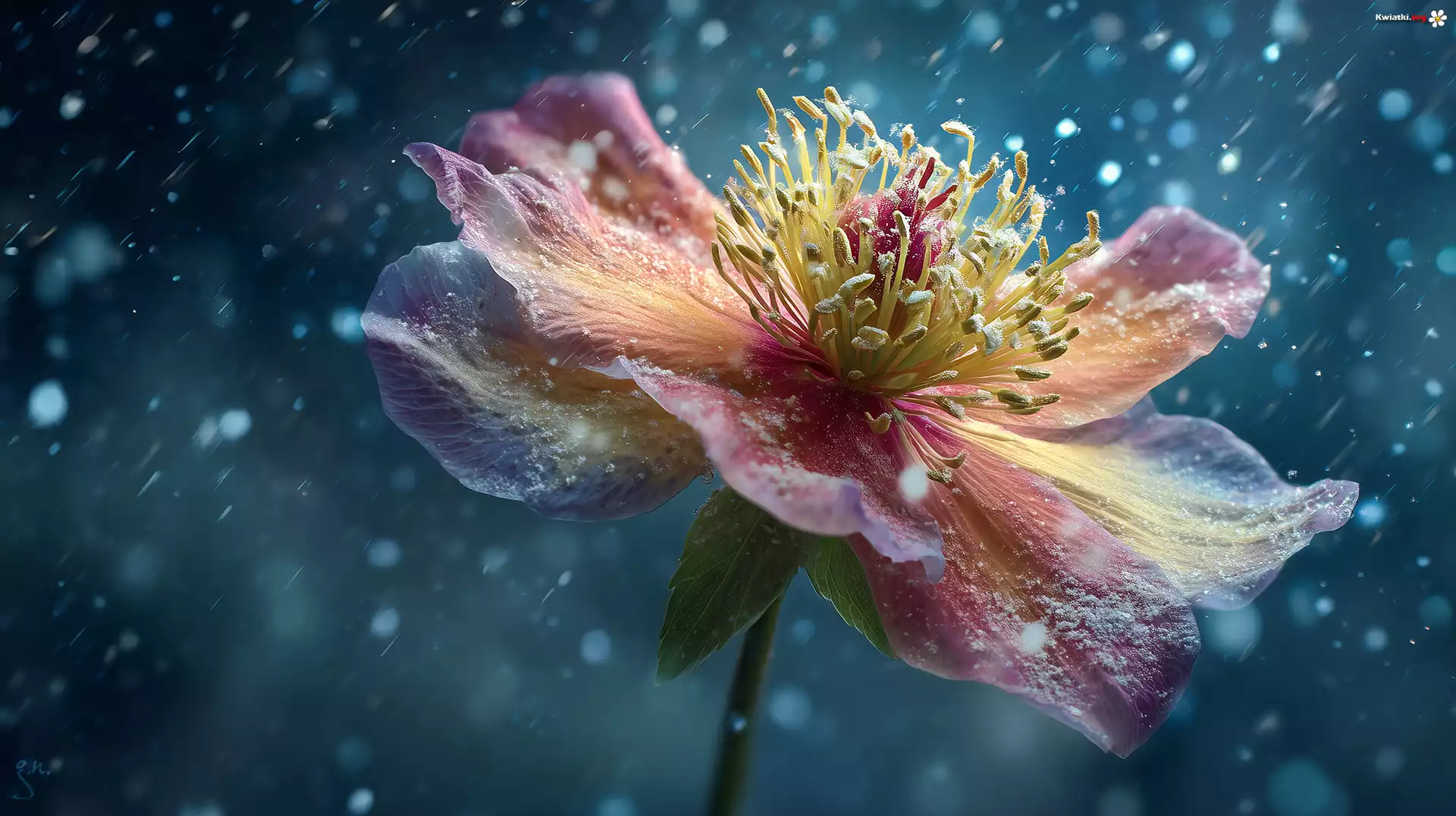 Kwiat Kolorowy, Kwiat, Śnieg, Grafika AI
