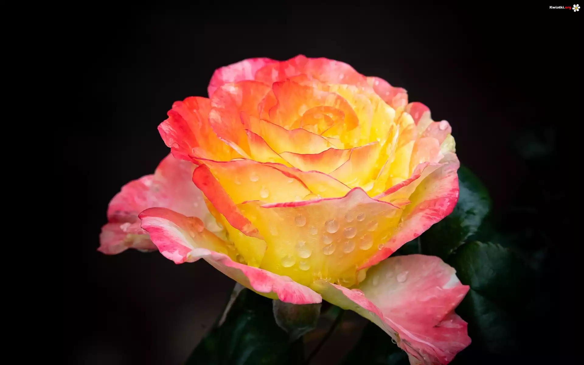 Kwiat Kwiat, Róża, Listki, Tło ciemne