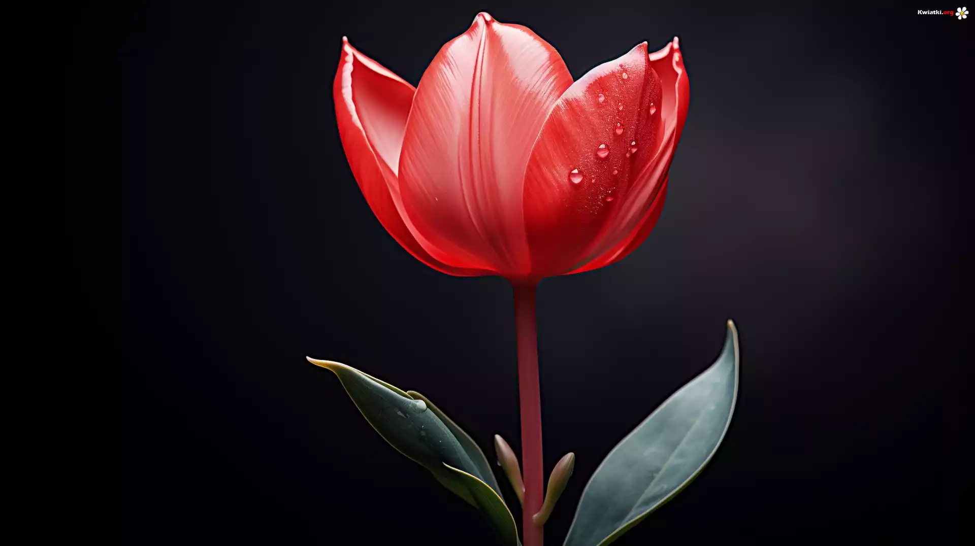 Kwiat Kwiat, Czerwony, Tulipan, Liście, Pąki, Krople, Wody, Czarne, Tło, Grafika