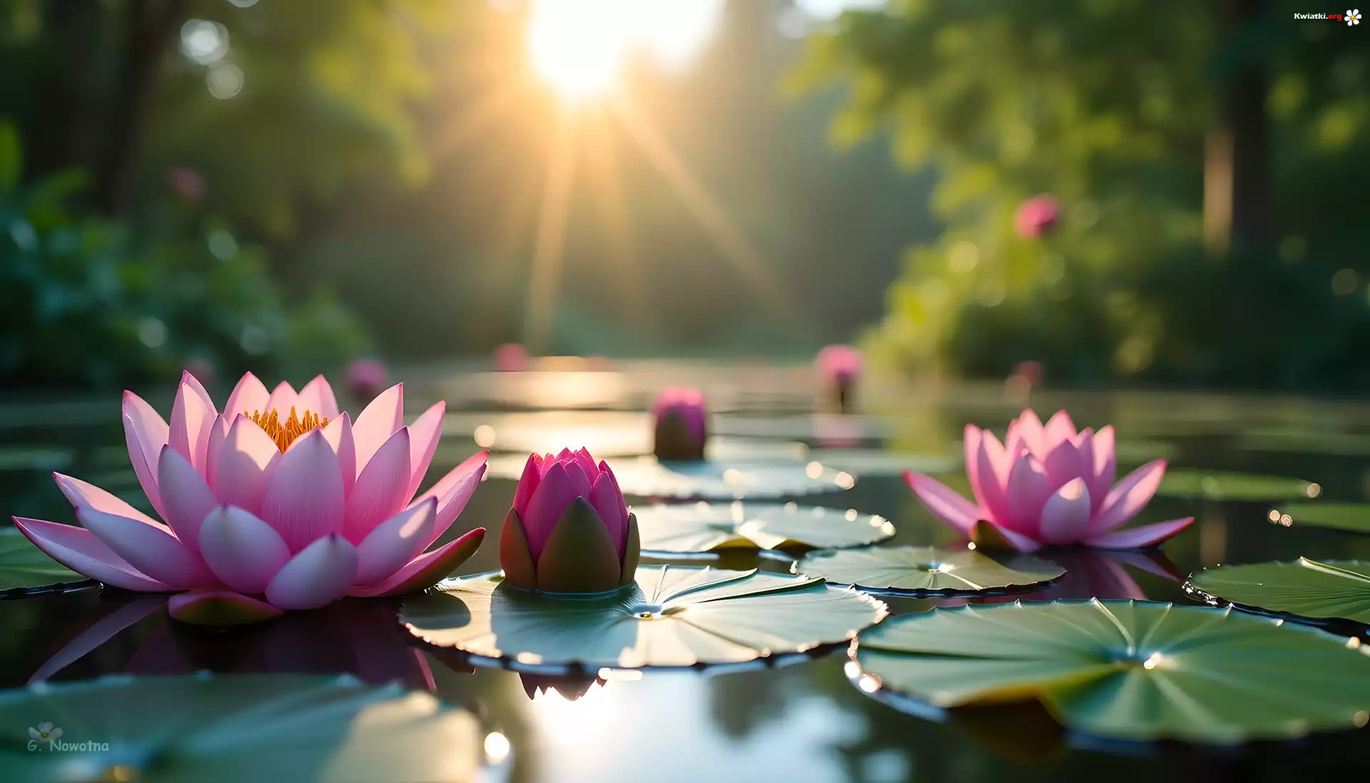 Kwiat Różowe, Lilie wodne, Kwiaty, Grafika, Światło słoneczne Kwiat