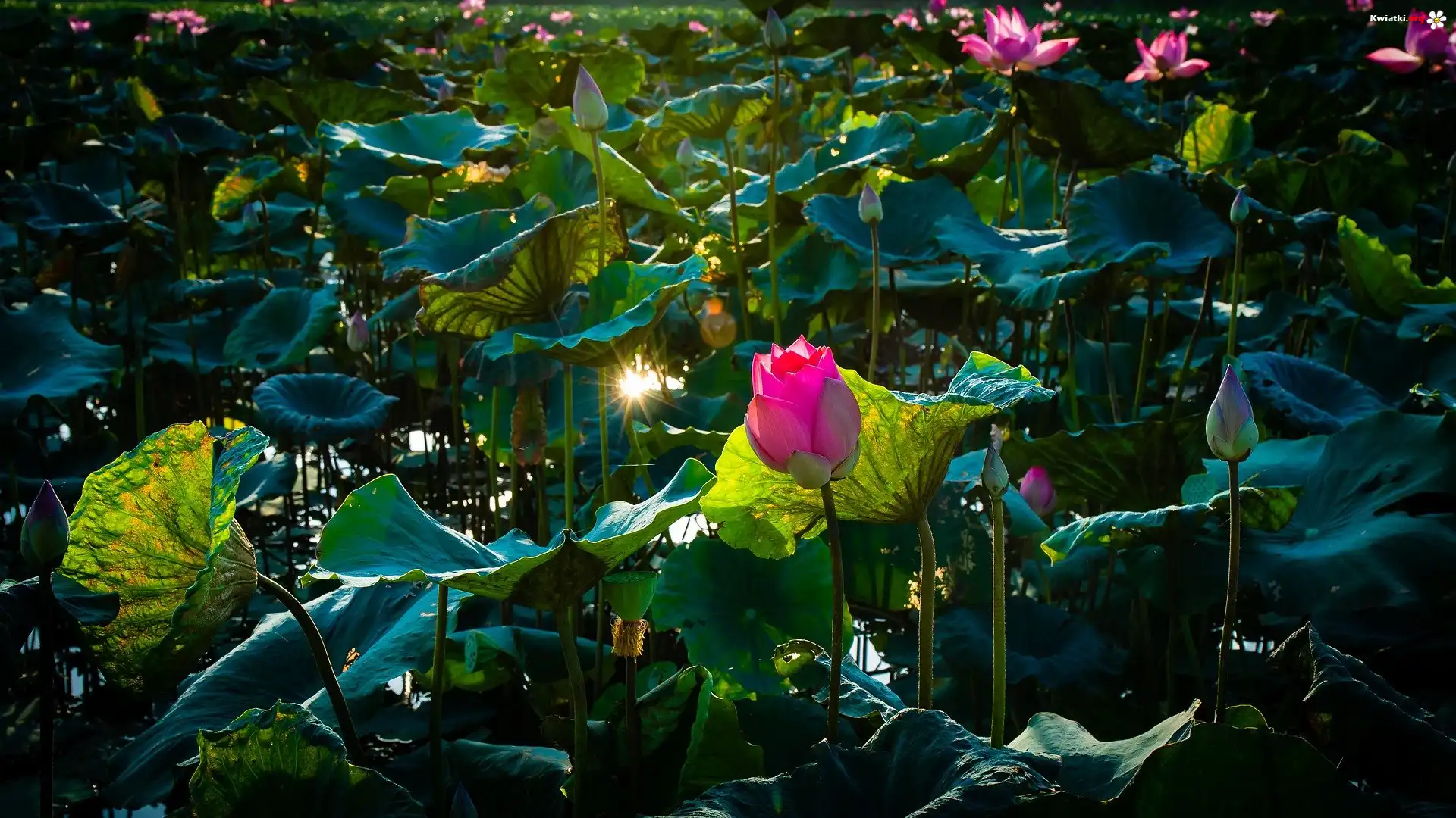 Kwiat, Lotos, Zielone, Liście - Zdjęcia