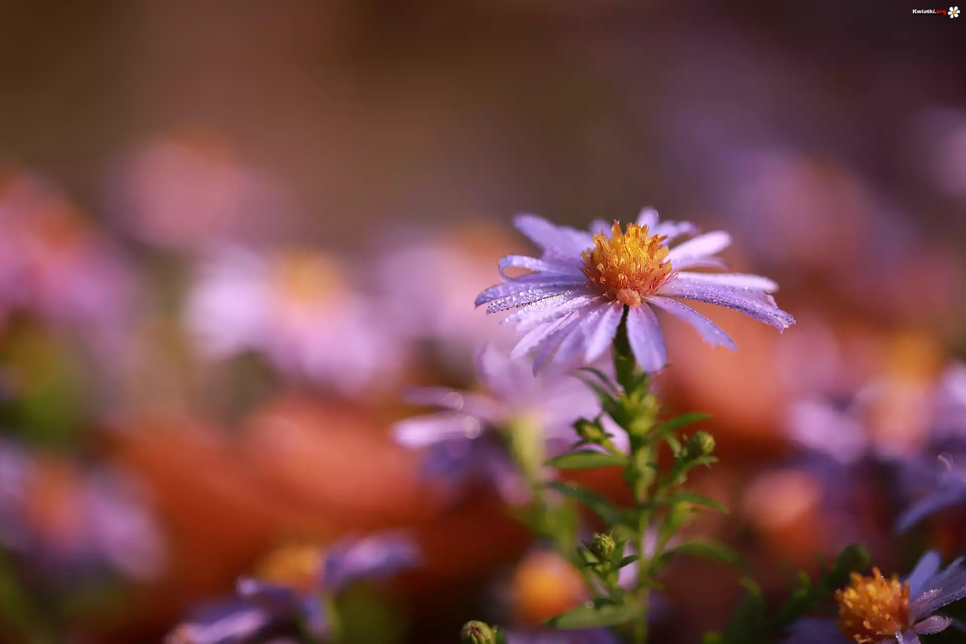 Kwiat Zroszony, Aster, Fioletowy, Kwiat