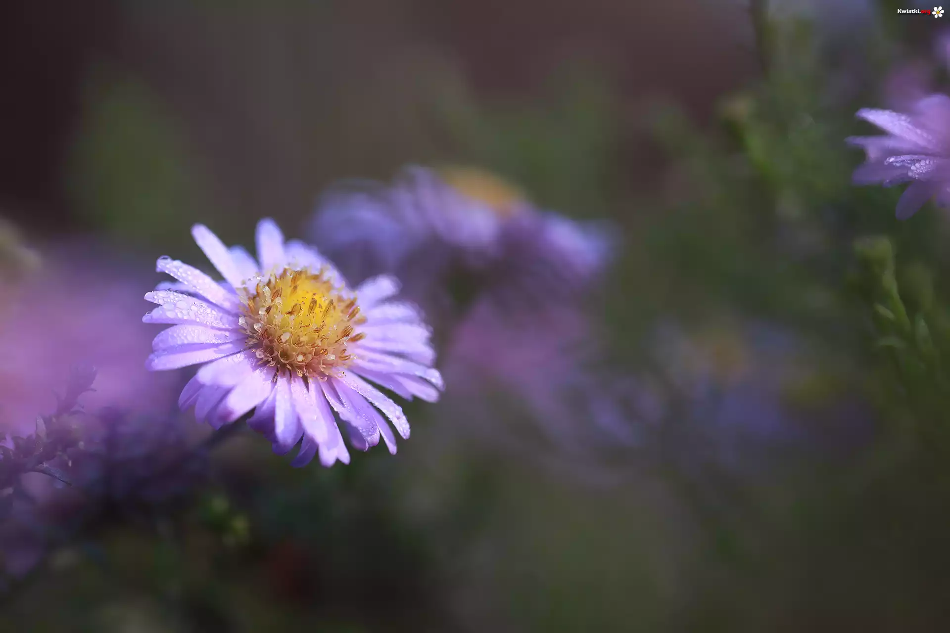 Kwiat Zroszony, Aster, Liliowy, Kwiat
