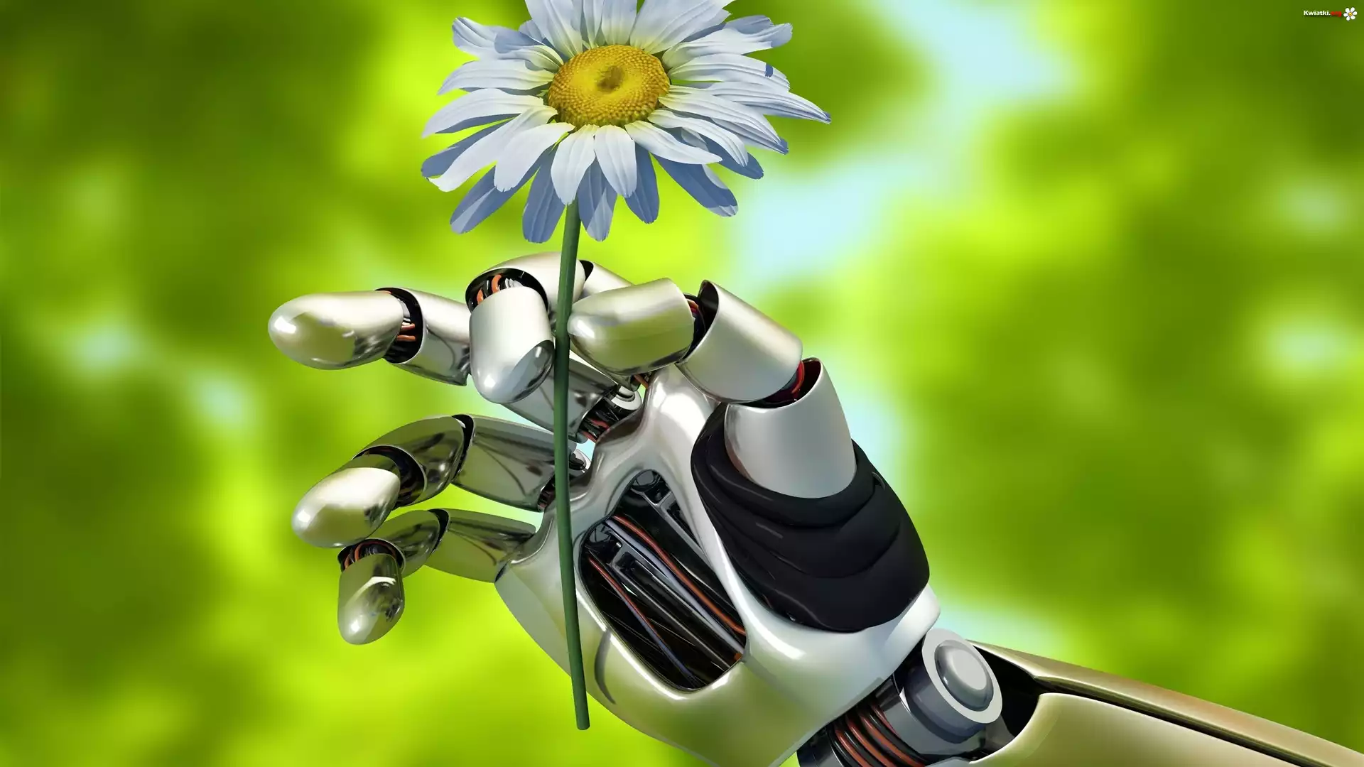 Kwiat Kwiatek, Margarytka, Ręka, Robot, 3D