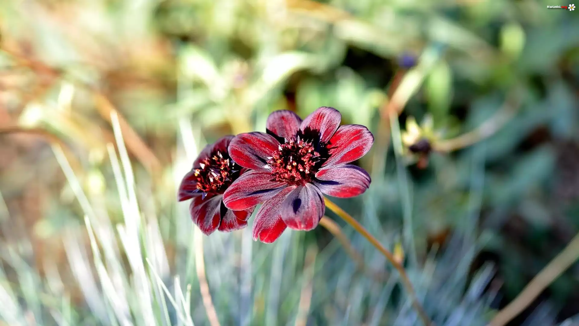 Bordowe, Kwiatki, Trawa - Zdjęcia