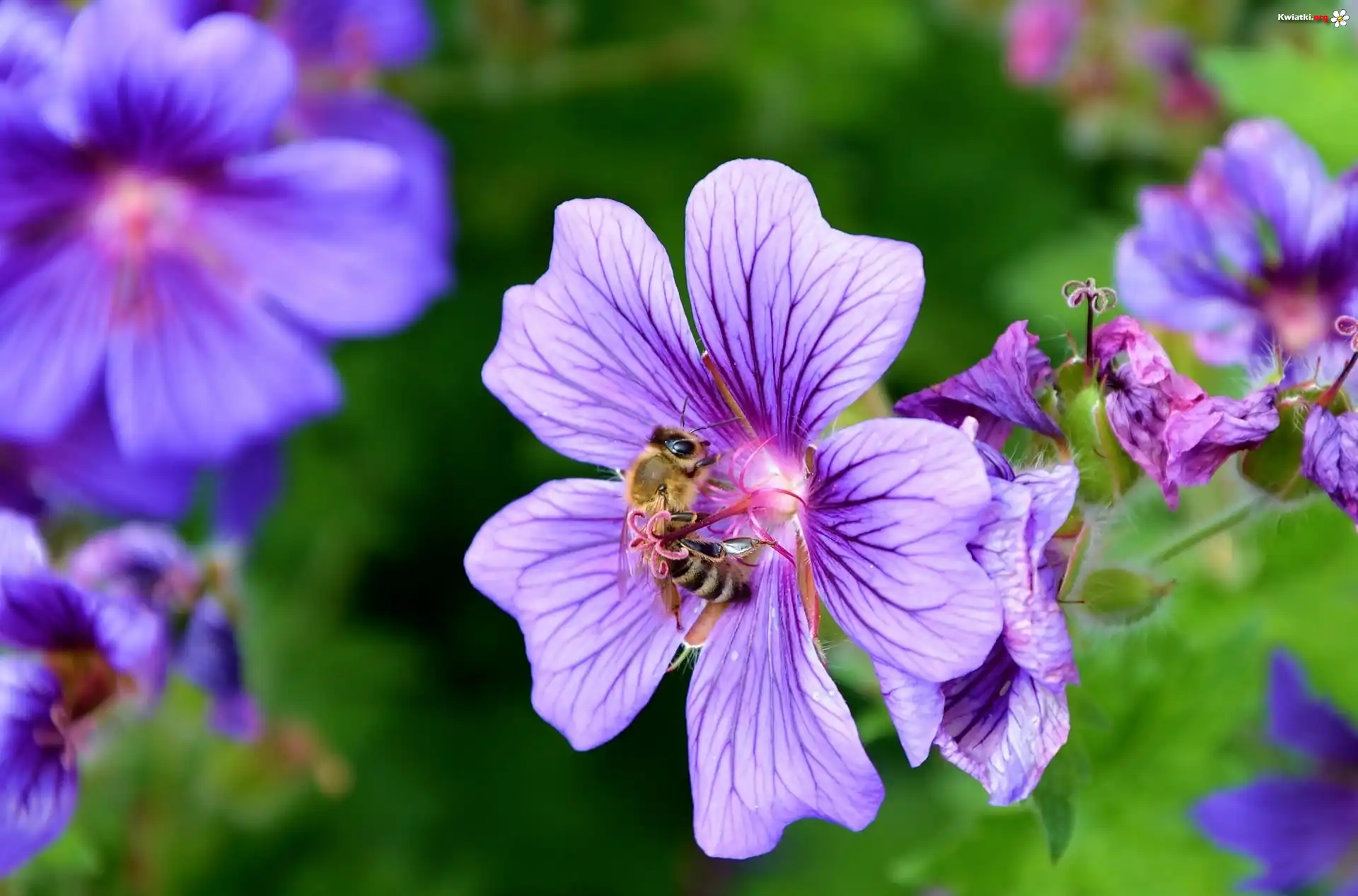 Fioletowe, Kwiatki, Pszczoła, Bodziszek - Zdjęcia