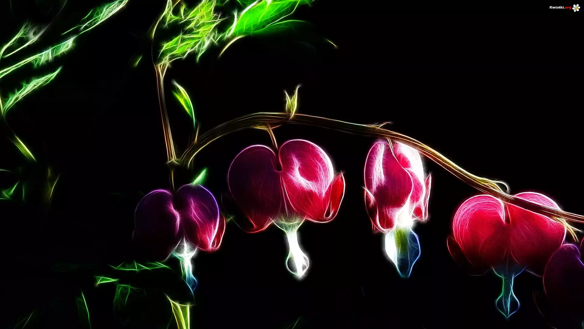 Kwiat Różowe, Kwiatki, Serduszka okazałe, Gałązka, Czarne, Tło, Fractalius