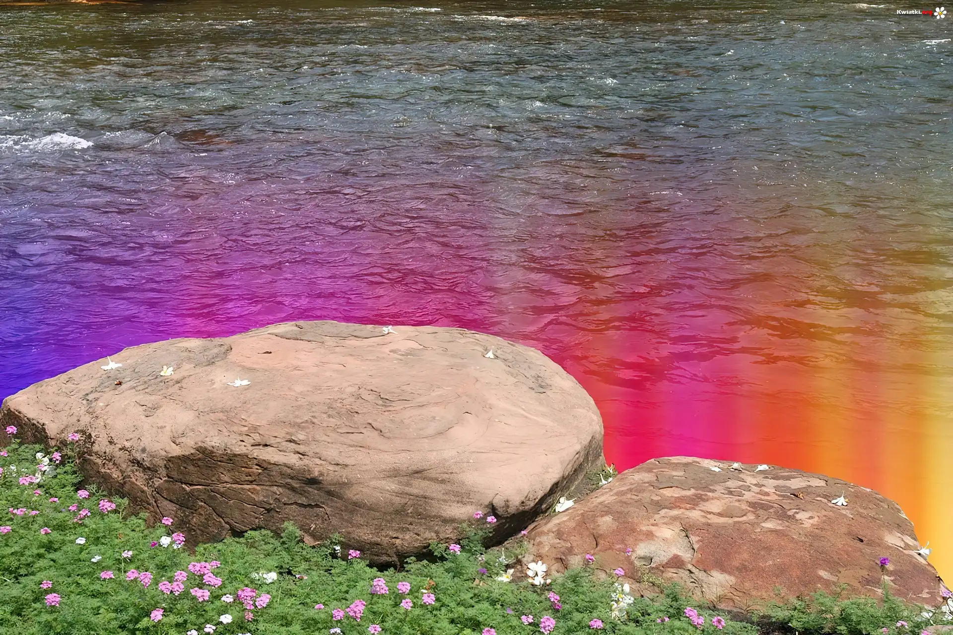 Kwiatki, Kamienie, Kolorowa, Woda - Zdjęcia