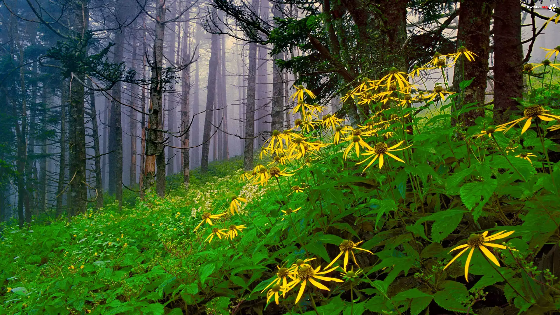 Las, Kwiatki, Mgła - Zdjęcia