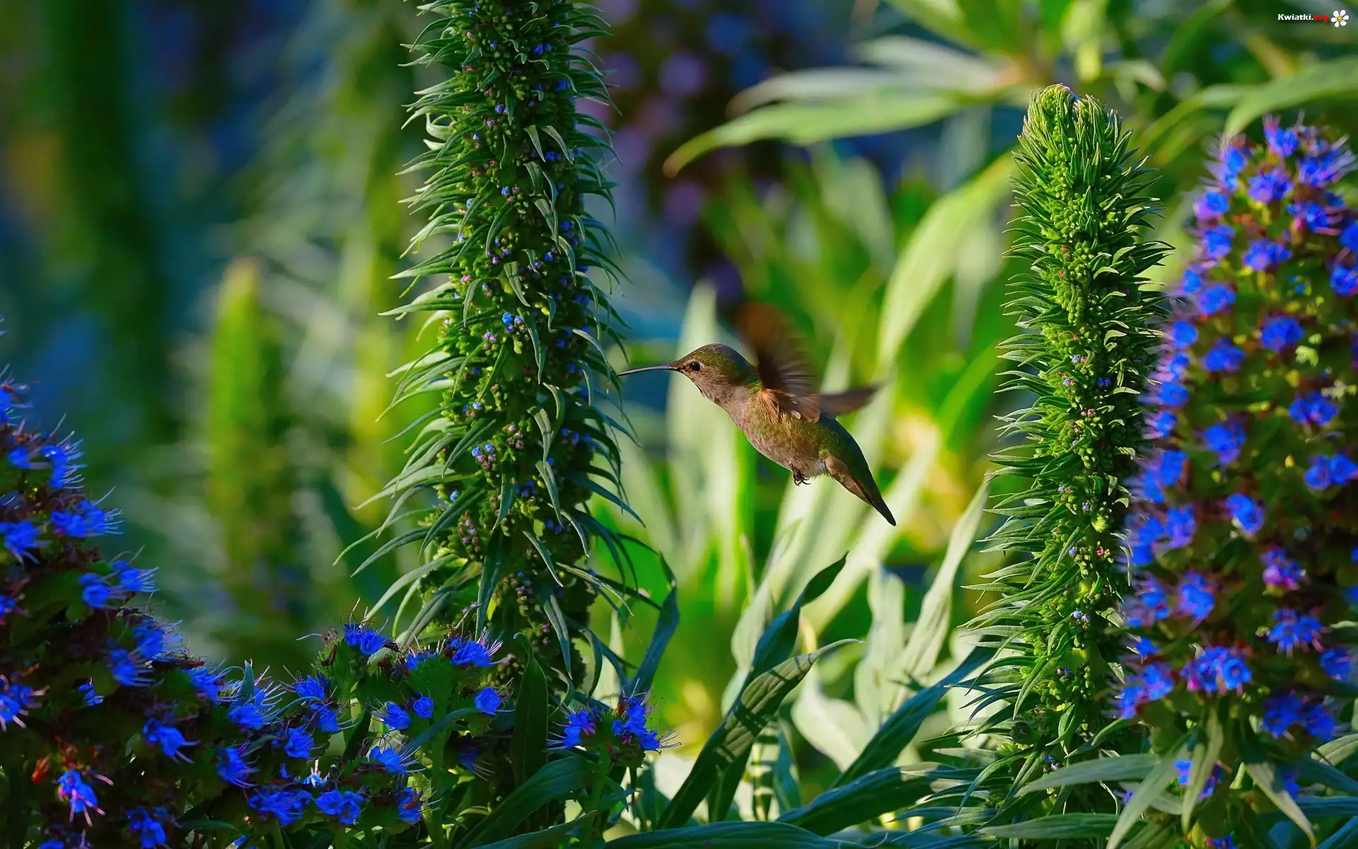 Niebieskie, Kwiatki, Koliber - Zdjęcia