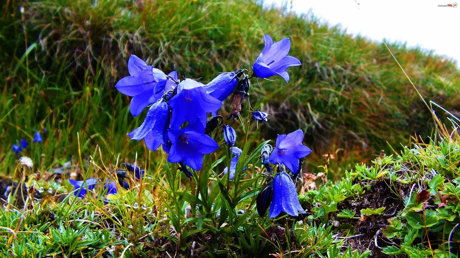Niebieskie, Kwiatki, Trawa - Zdjęcia