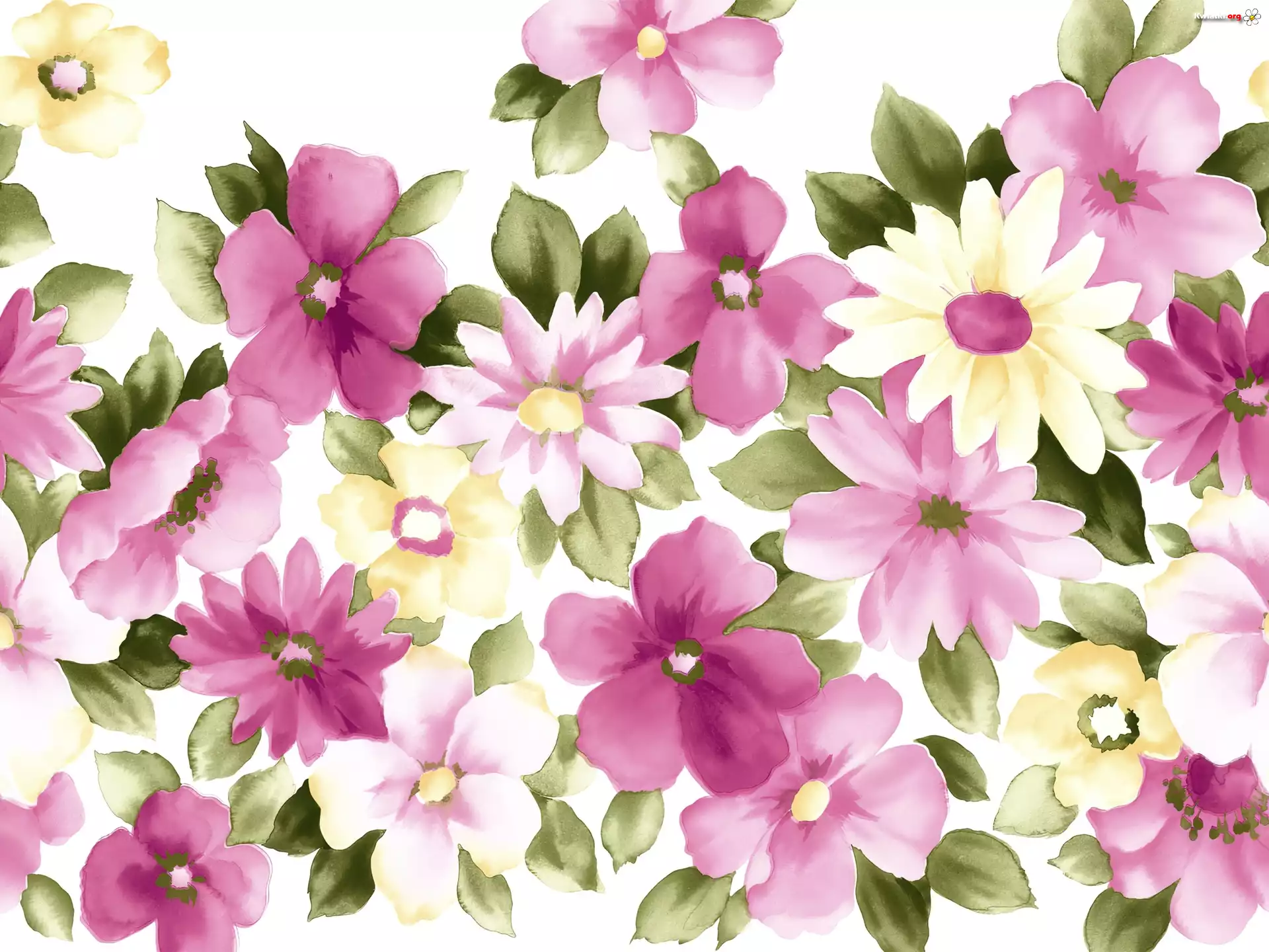 Kwiatki, Fioletowe, Różowe, Żółte, Malowane - Zdjęcia