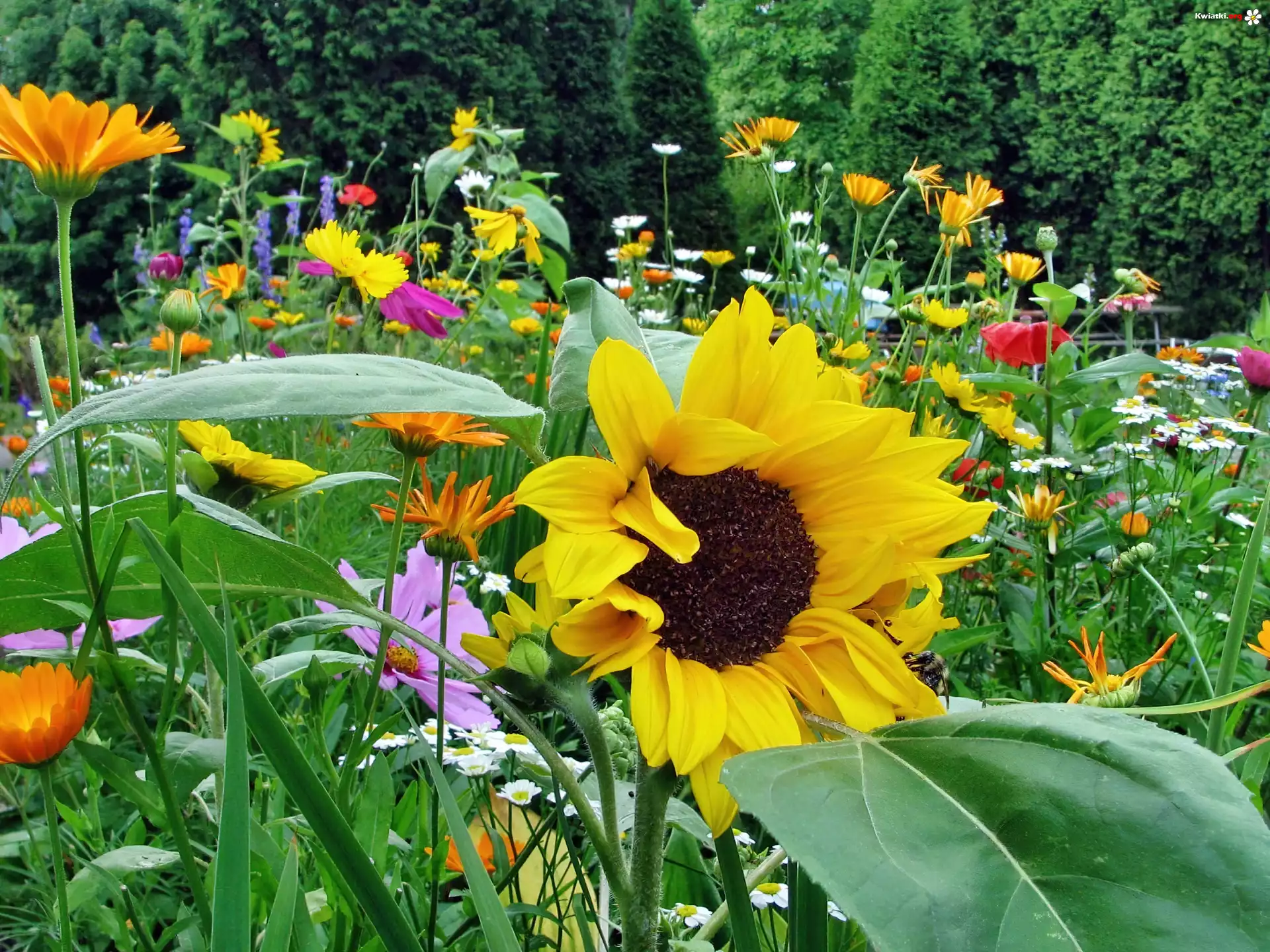 Słonecznik, Kwiatki, Ogród - Zdjęcia