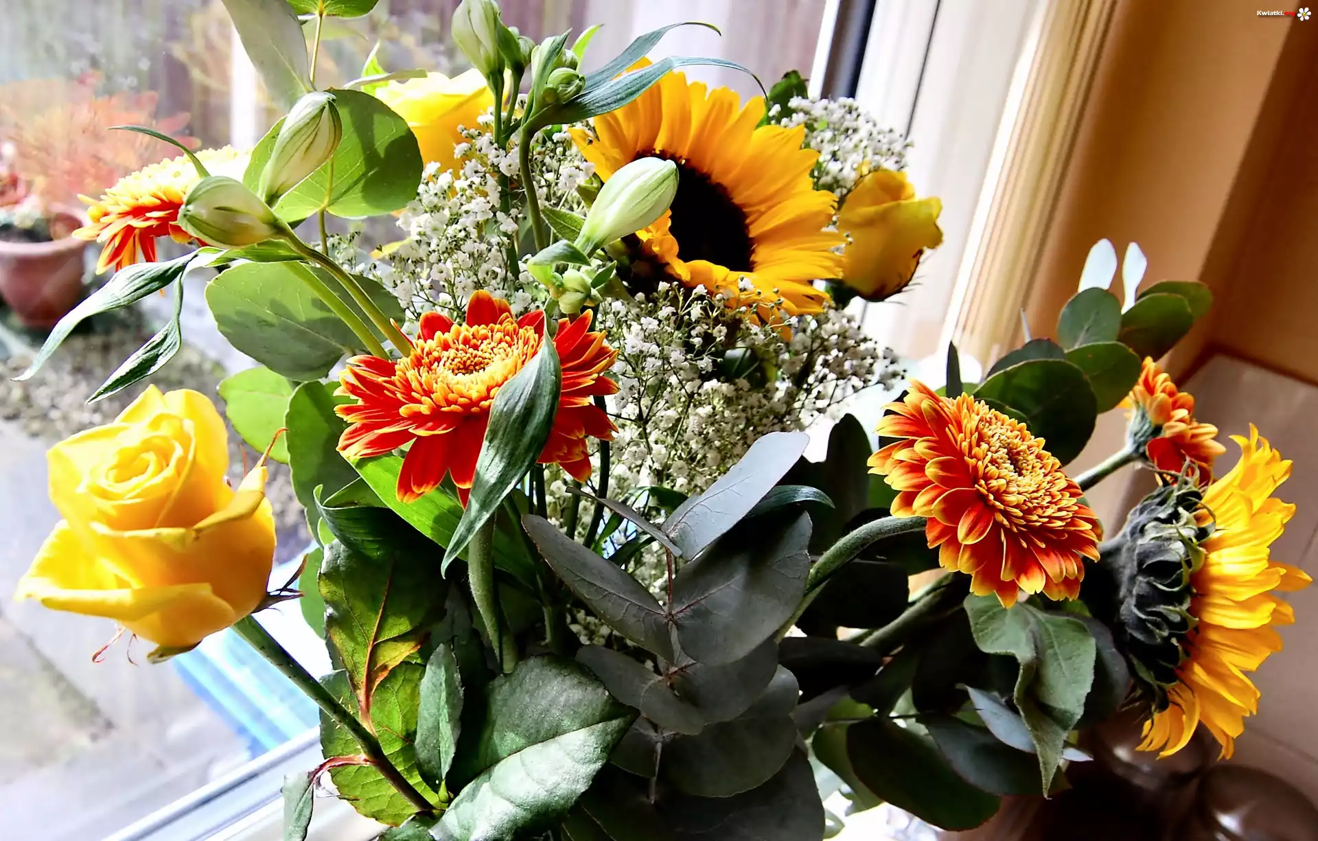 Bukiet, Kwiatów, Parapet - Zdjęcia