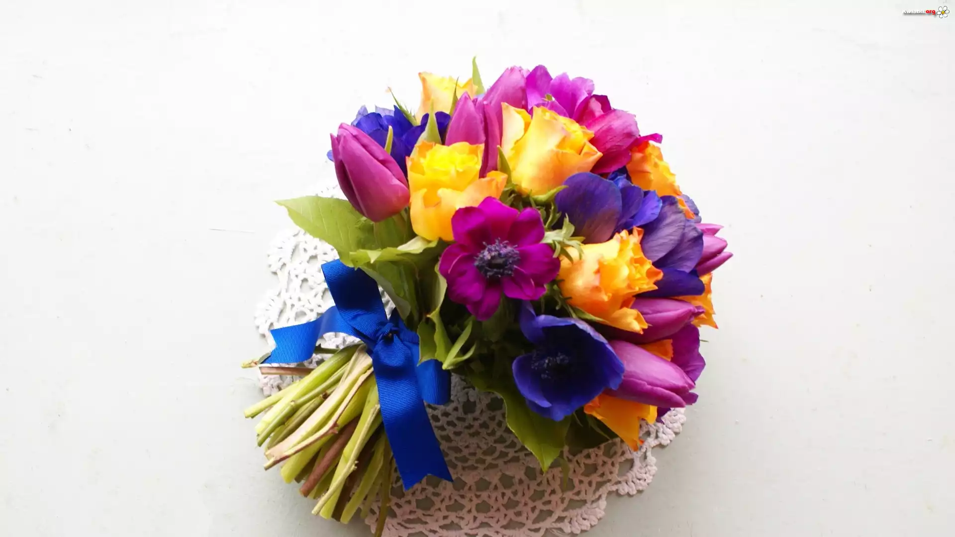 Kwiat Bukiet, Kwiatów, Maki, Tulipany, Georginie, Róże, Serwetka