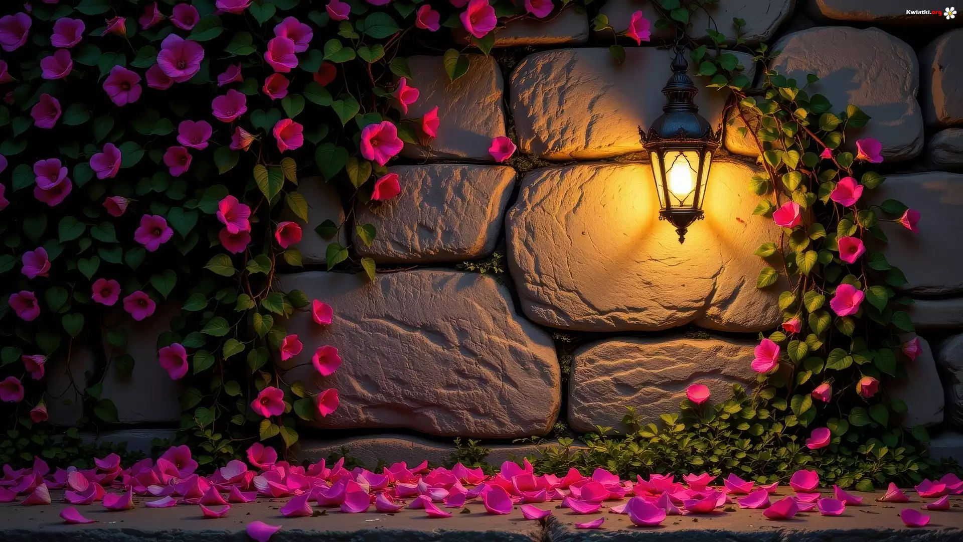 Ściana, Mur, Purpurowe, Kwiaty, Świecący, Lampion, Płatki, Kwiatów - Zdjęcia