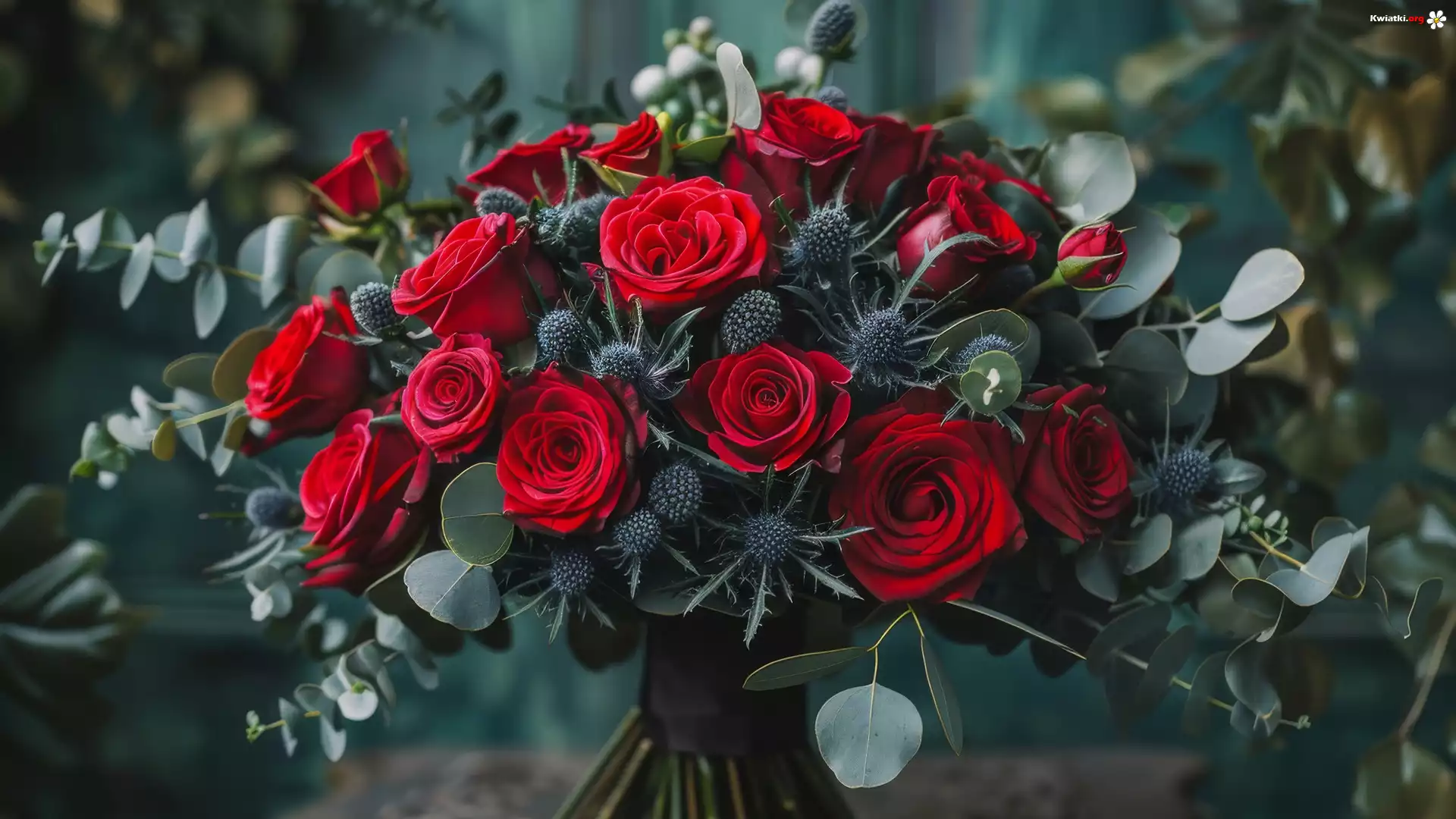 Bukiet Kwiatów, Róże, Osty, Grafika - Zdjęcia