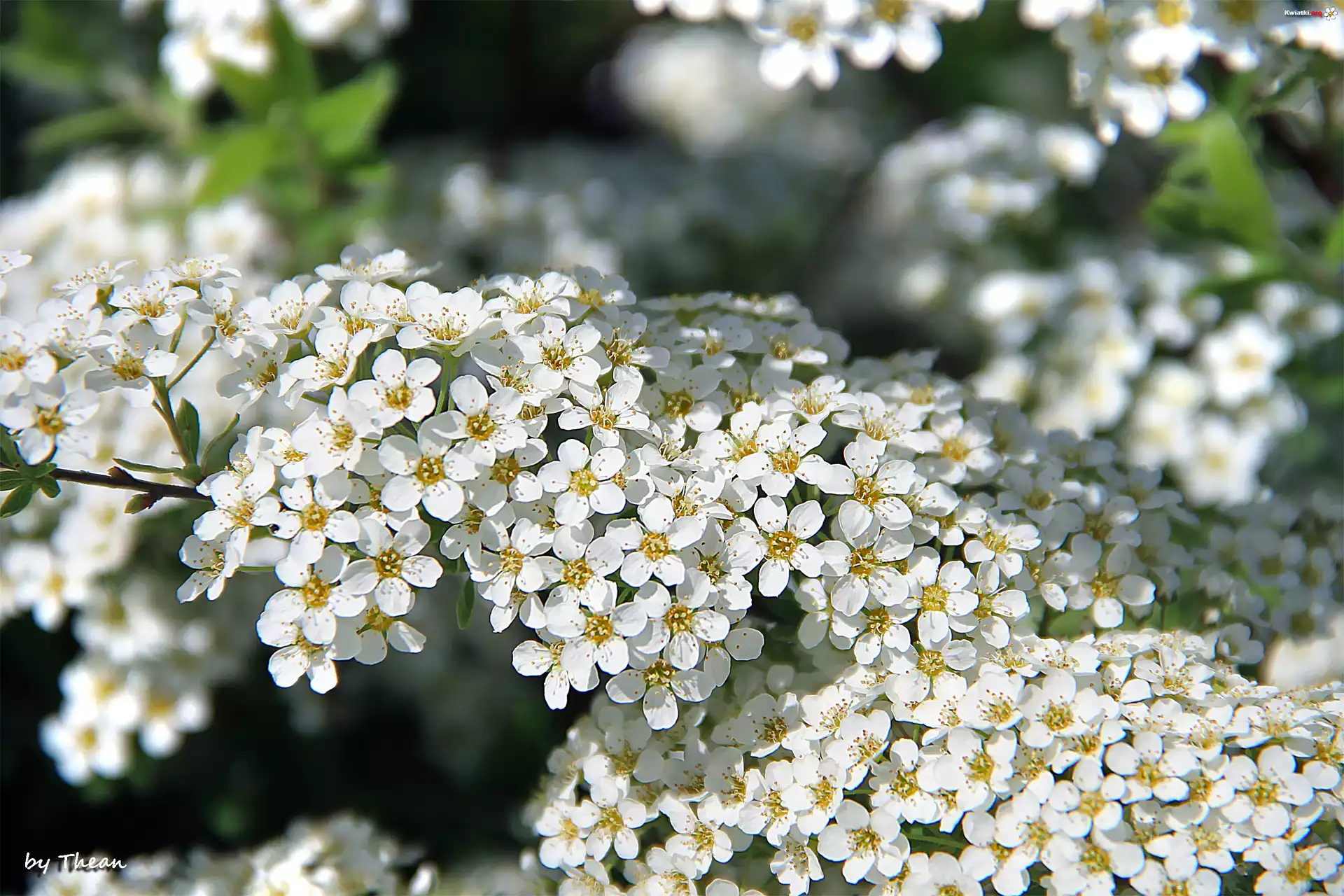 Białe, Kwiatuszki, Krzew - Zdjęcia