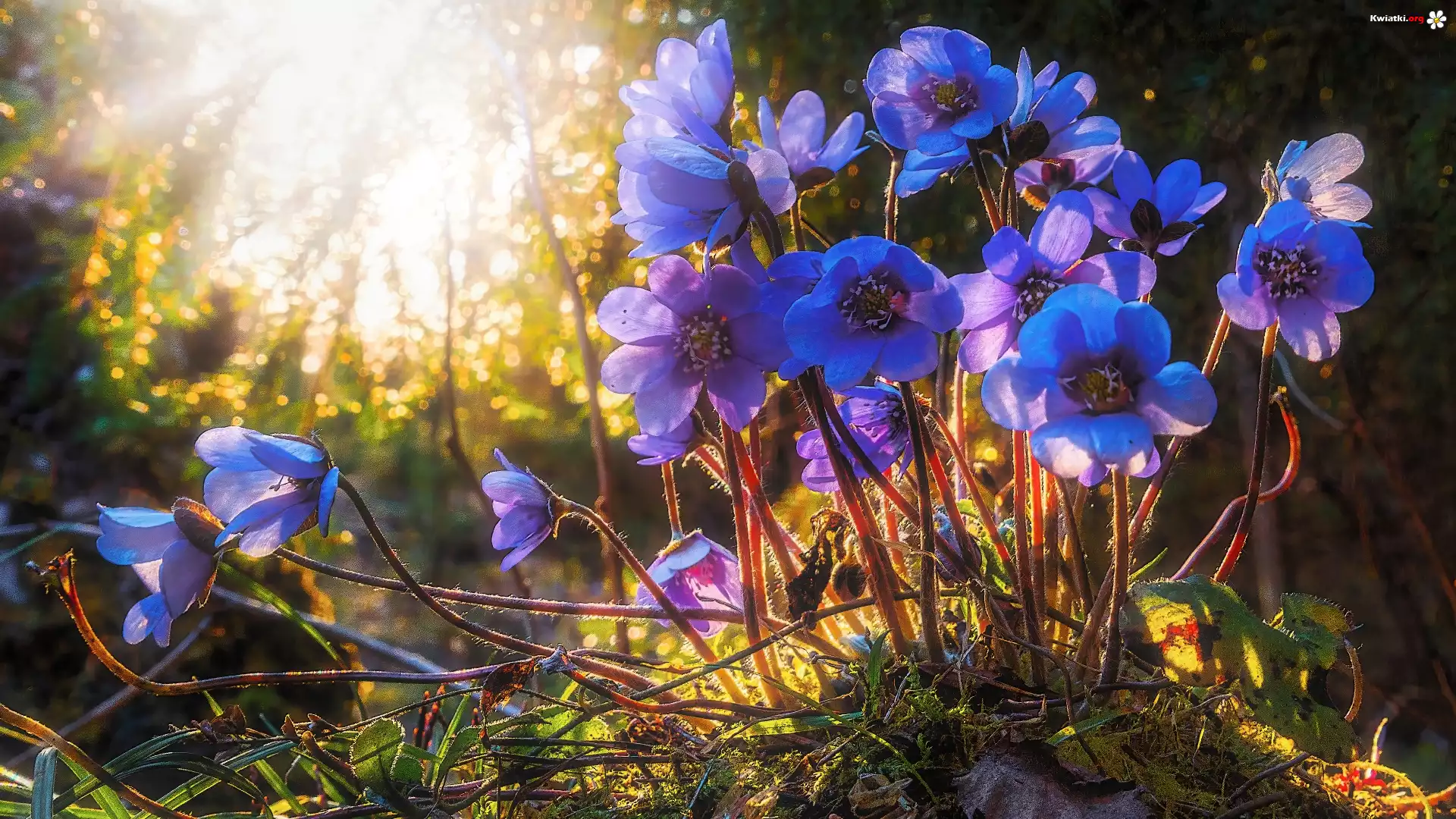 Kwiat Niebieskie, Kwiaty, Przylaszczki, Trawa
