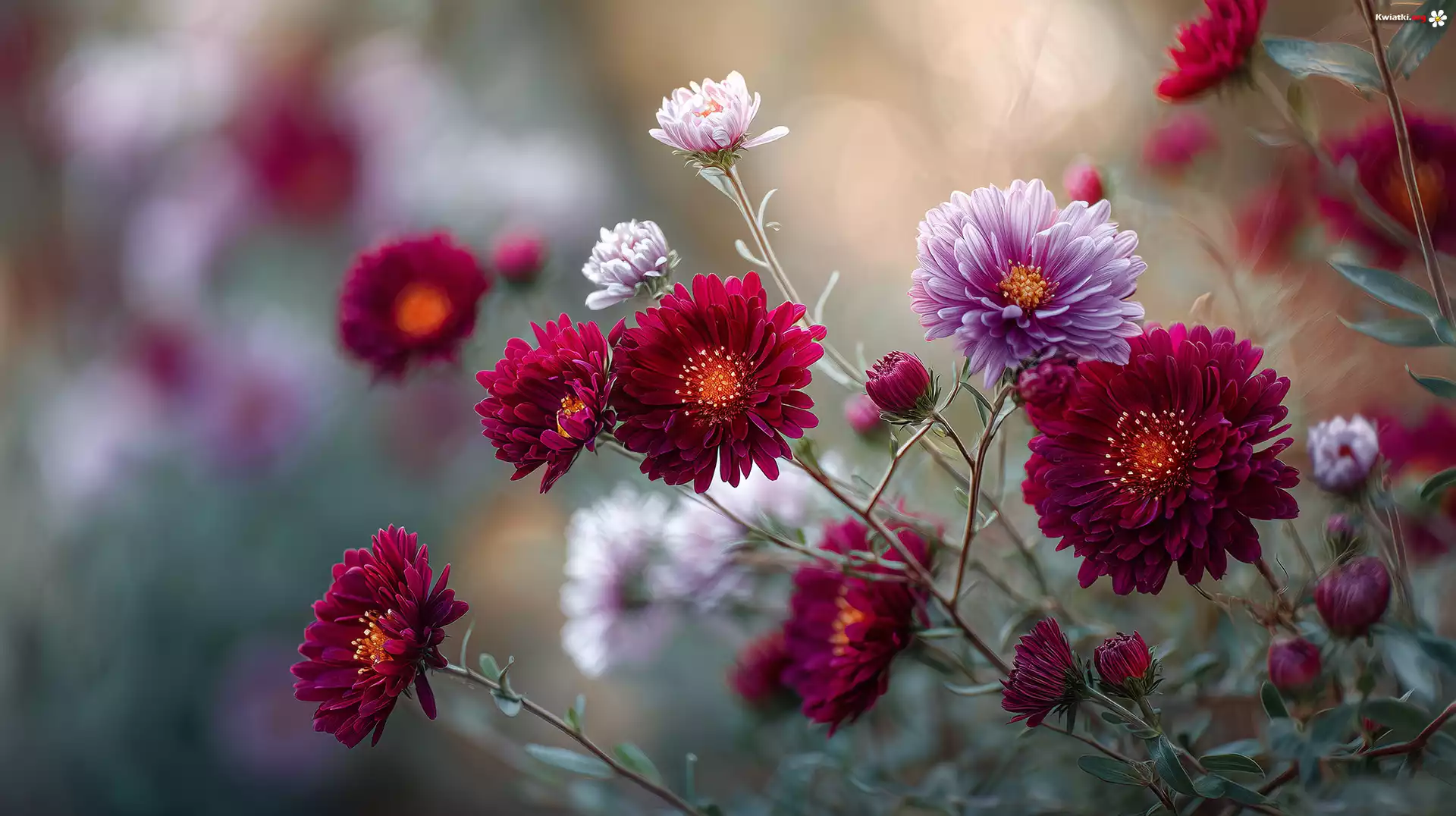 Bordowe, Różowe, Astry, Kwiaty, Grafika AI - Zdjęcia