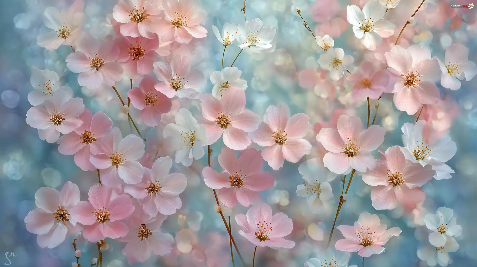 Drobne, Różowe, Białe, Kwiaty, Grafika AI - Zdjęcia
