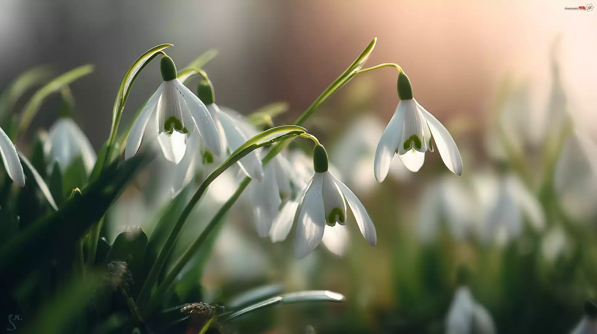 Kwiat Pochylone, Przebiśniegi, Białe, Kwiaty, Grafika AI