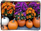 Dynie, Pomarańczowe, Fioletowe, Kwiaty, Grafika AI - Zdjęcia