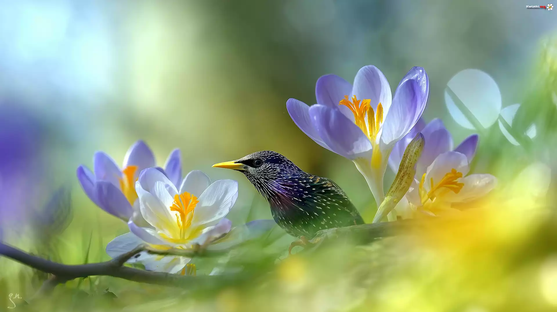 Kwiat Szpak, Ptak, Krokusy, Kwiaty, Grafika AI