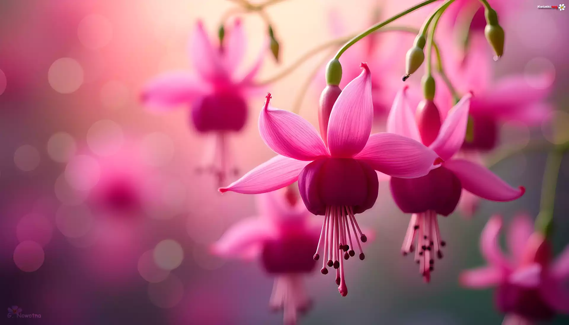 Fuksja, Rozkwitnięte, Różowe, Kwiaty, Grafika AI - Zdjęcia