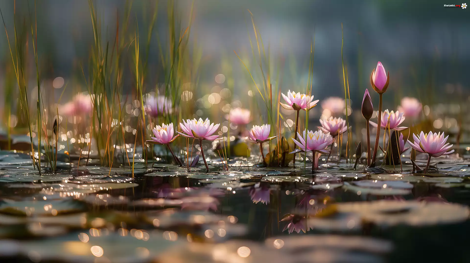 Lilie wodne, Różowe, Kwiaty, Grafika AI - Zdjęcia