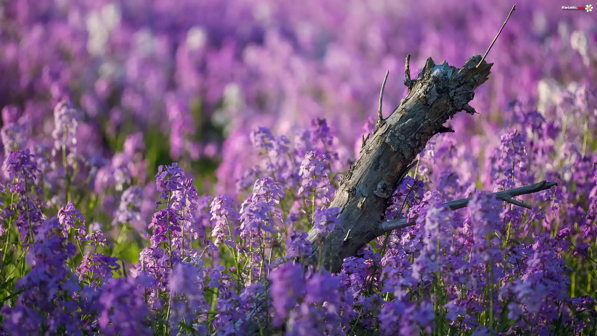 Łąka, Kwiaty, Konar - Zdjęcia