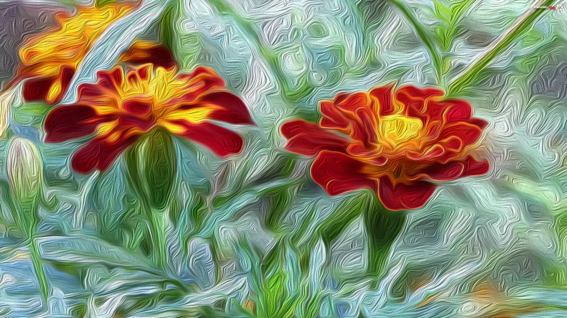Aksamitki, Kwiaty, Grafika - Zdjęcia